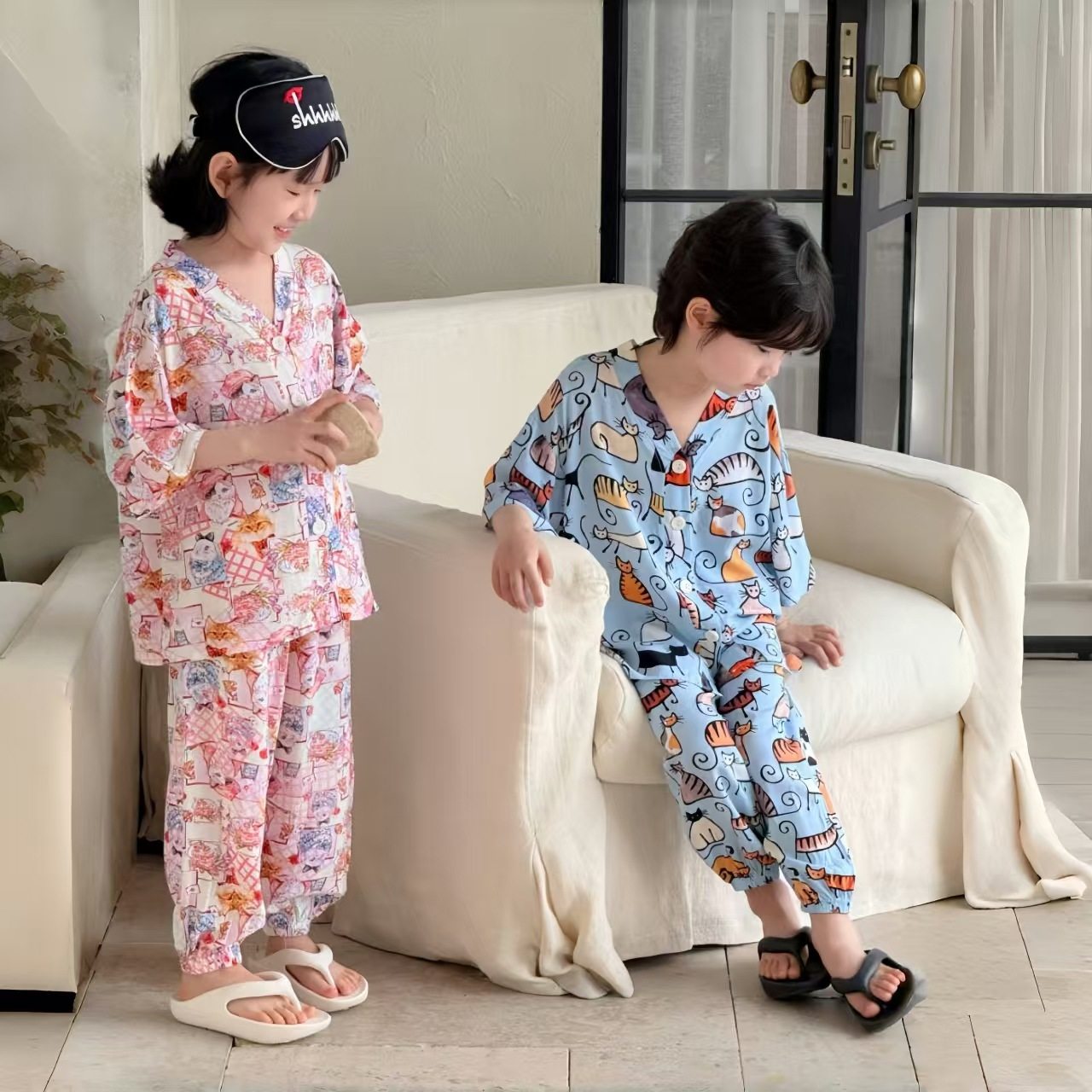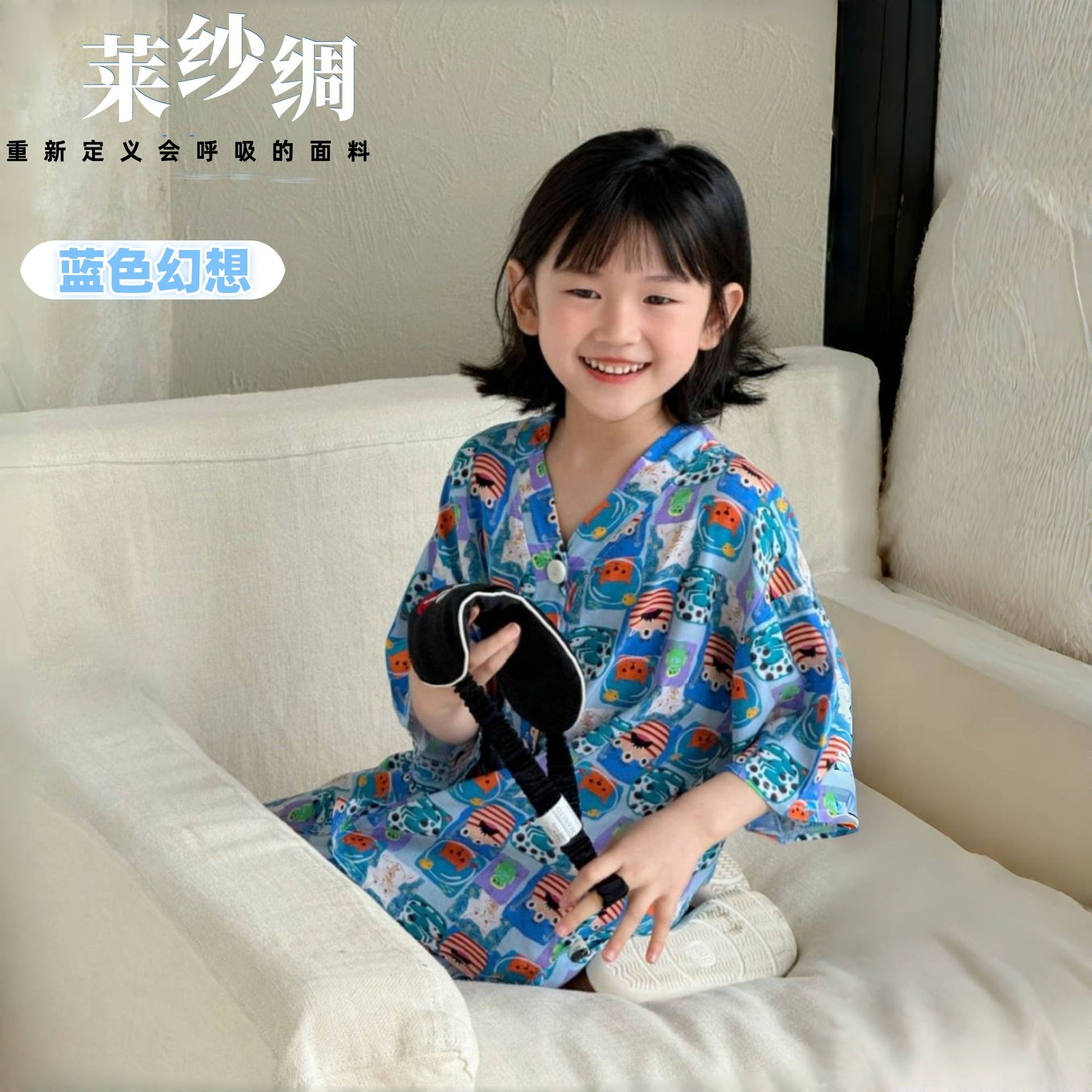 【莱纱绸-涂鸦家居服】儿童棉绸睡衣家居服夏季儿童莱纱绸清凉舒适家居空调服