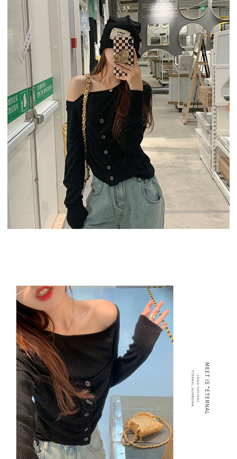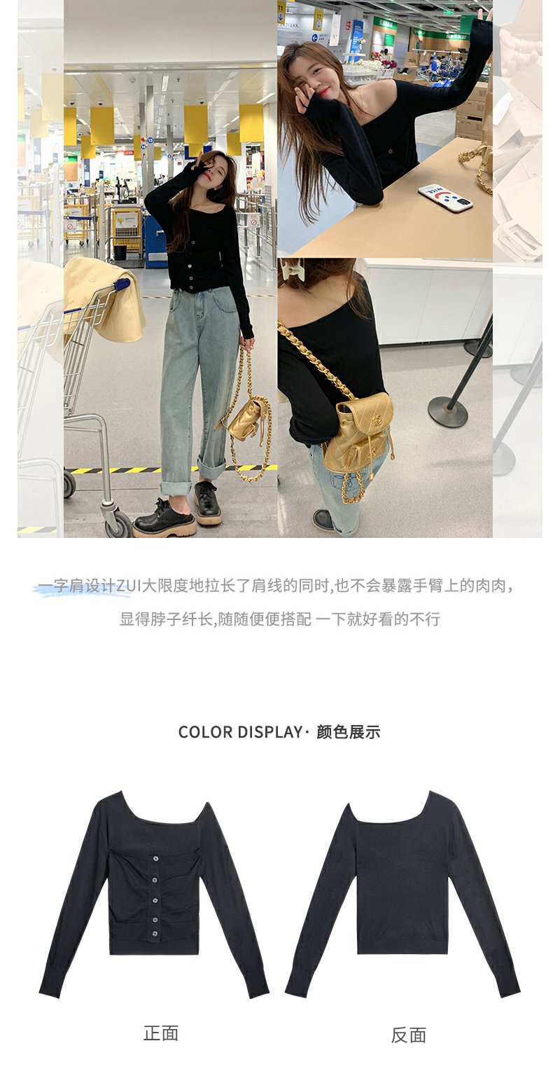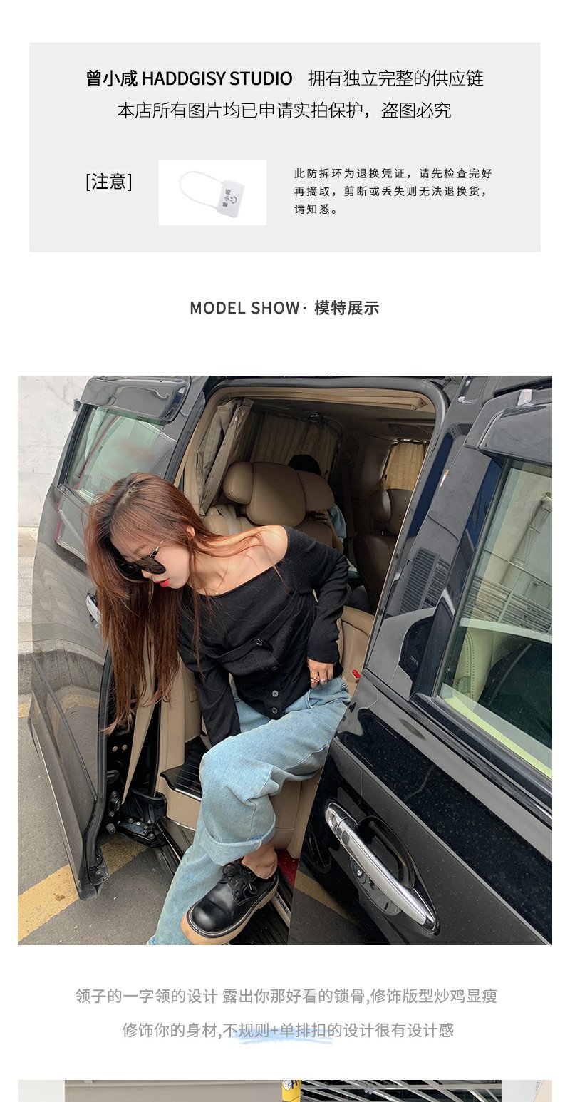 <曾小咸推荐>巨折清仓秒杀,稀有现货24小时发【仅限今日】露肩针织上衣女设计感小众修身短款上衣黑色毛衣潮