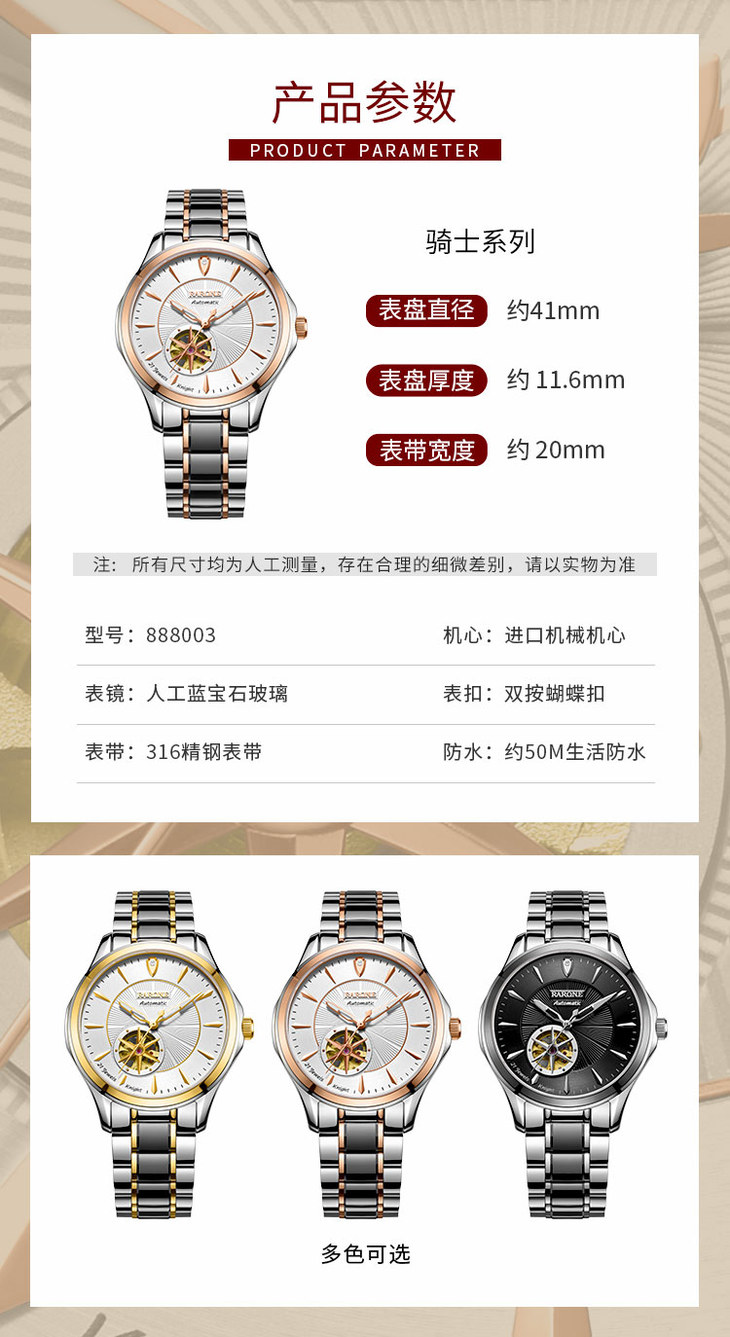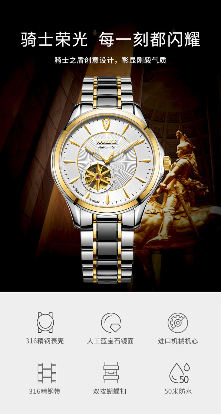 RARONE雷诺表骑士系列机械腕表888003