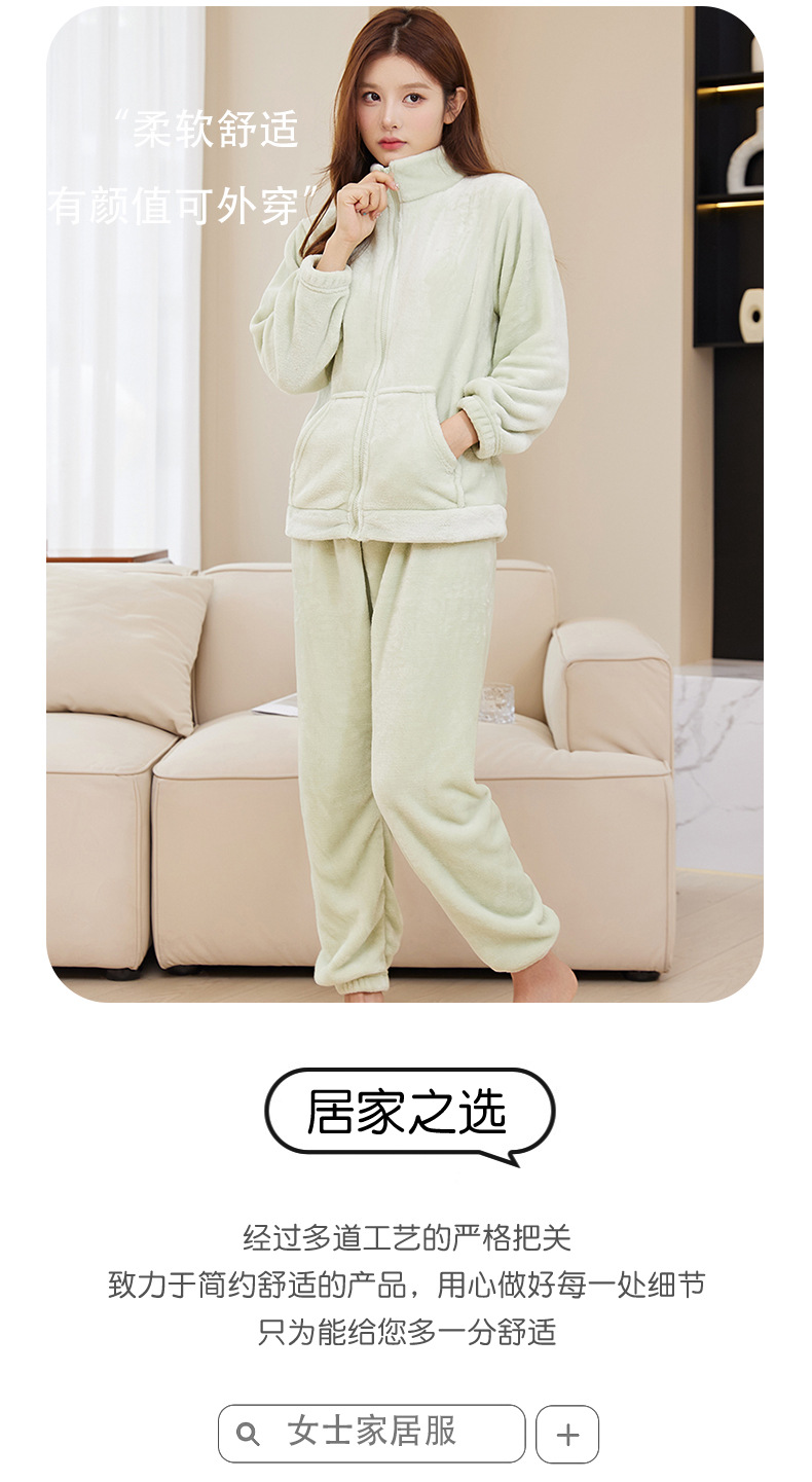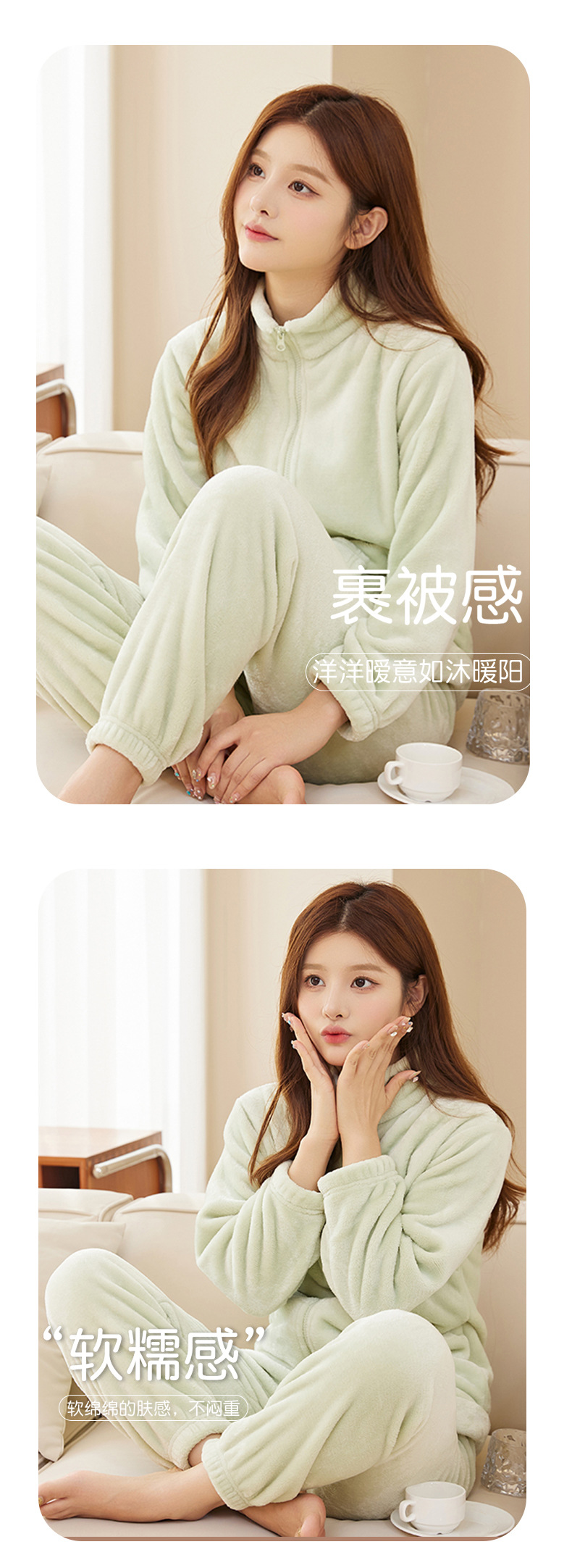 【杜小宅同款睡衣秋冬季多巴胺ins风】 法兰绒加厚拉链家居服女士套装 柔软舒适 有颜值可外穿
