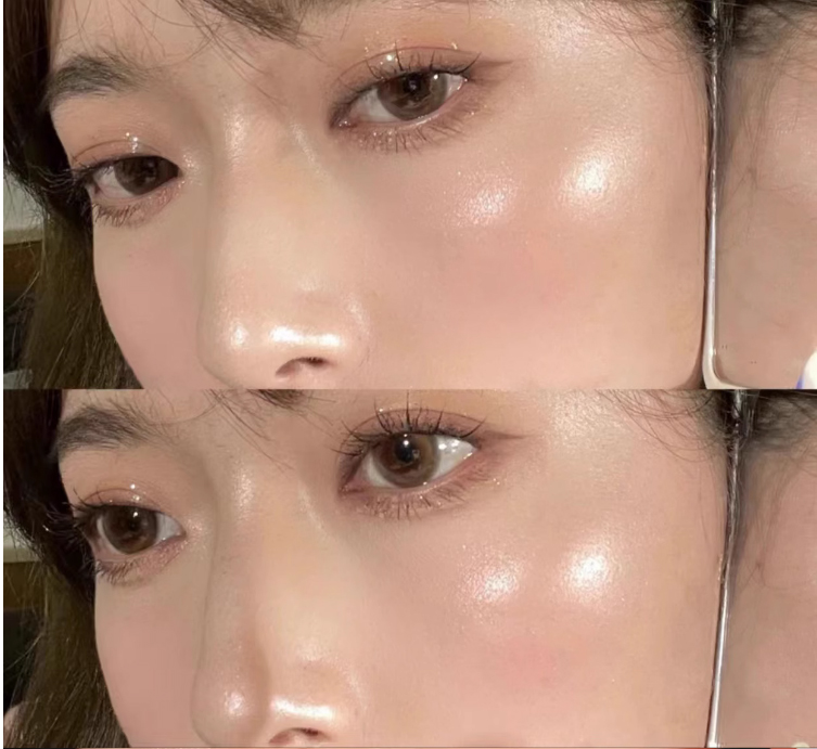 也可以做眼影闪片,玫瑰金与香槟金,双色散粉高光,