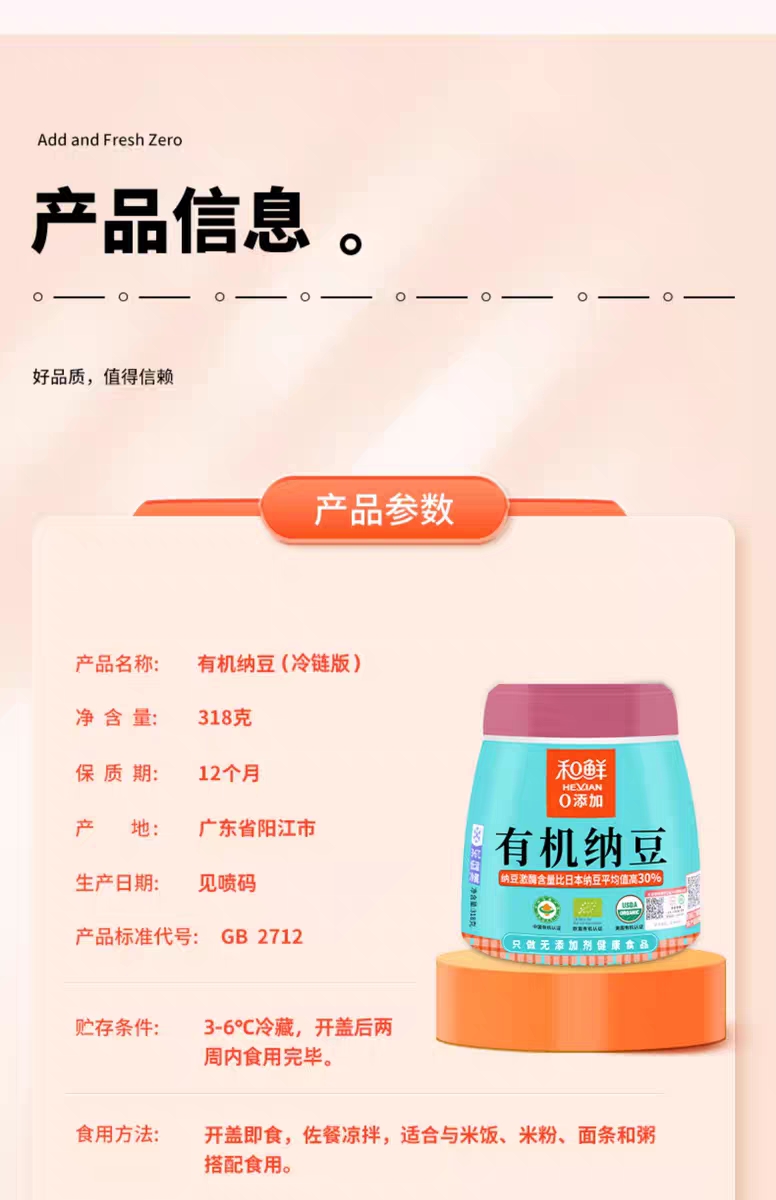 和鲜有机纳豆低温冷藏版 大豆发酵即食凉拌调味佐餐拌面方便菜 318g/罐 【京东快递送货上门】