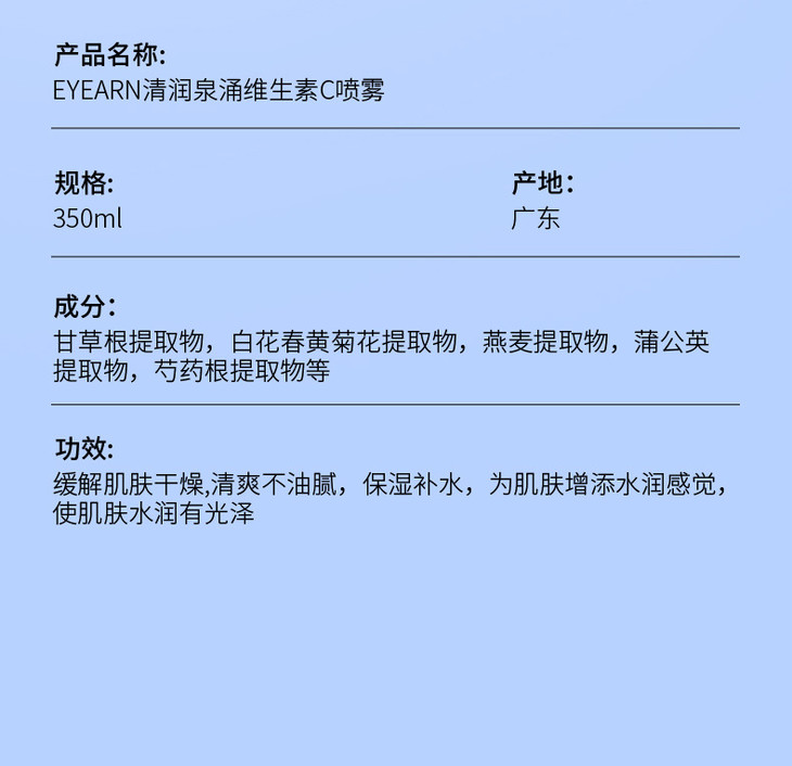 【依漾577vc补水喷雾】保湿清爽舒缓修护肌底爽肤水喷雾350ml
