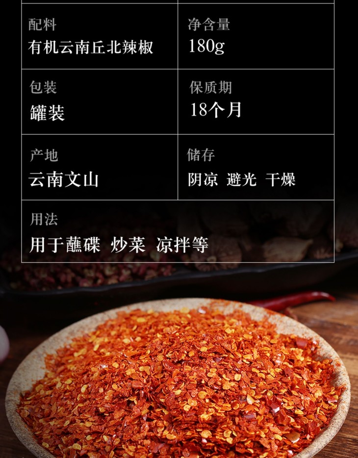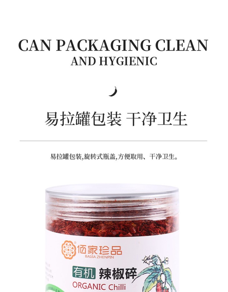 有机辣椒碎180克 佰家珍品 红有机辣椒碎 云南丘北辣椒 超香中辣支持自提