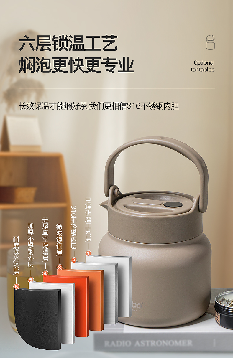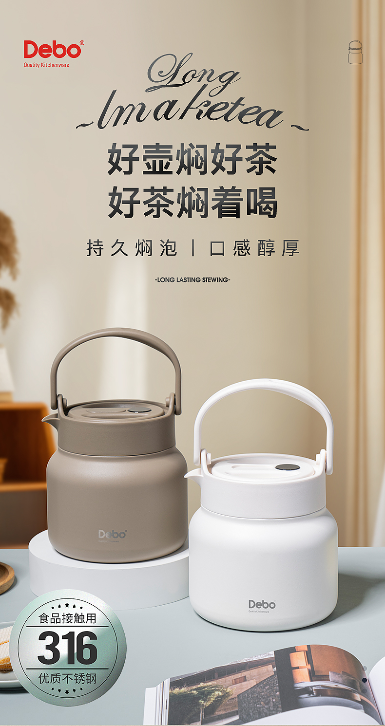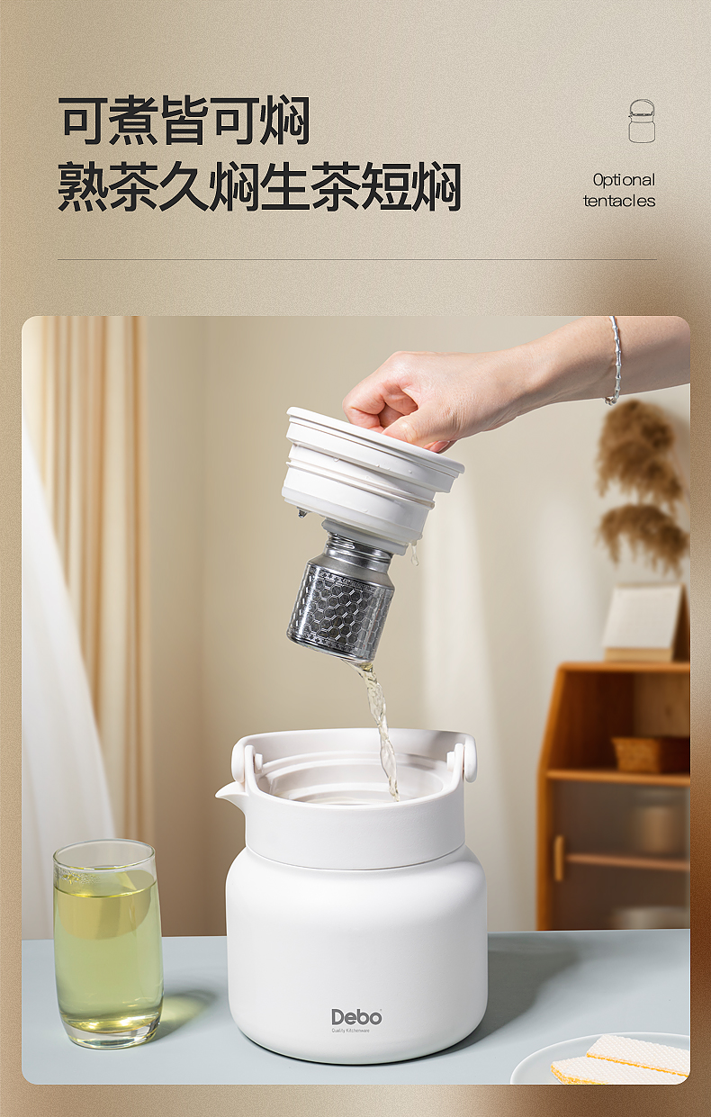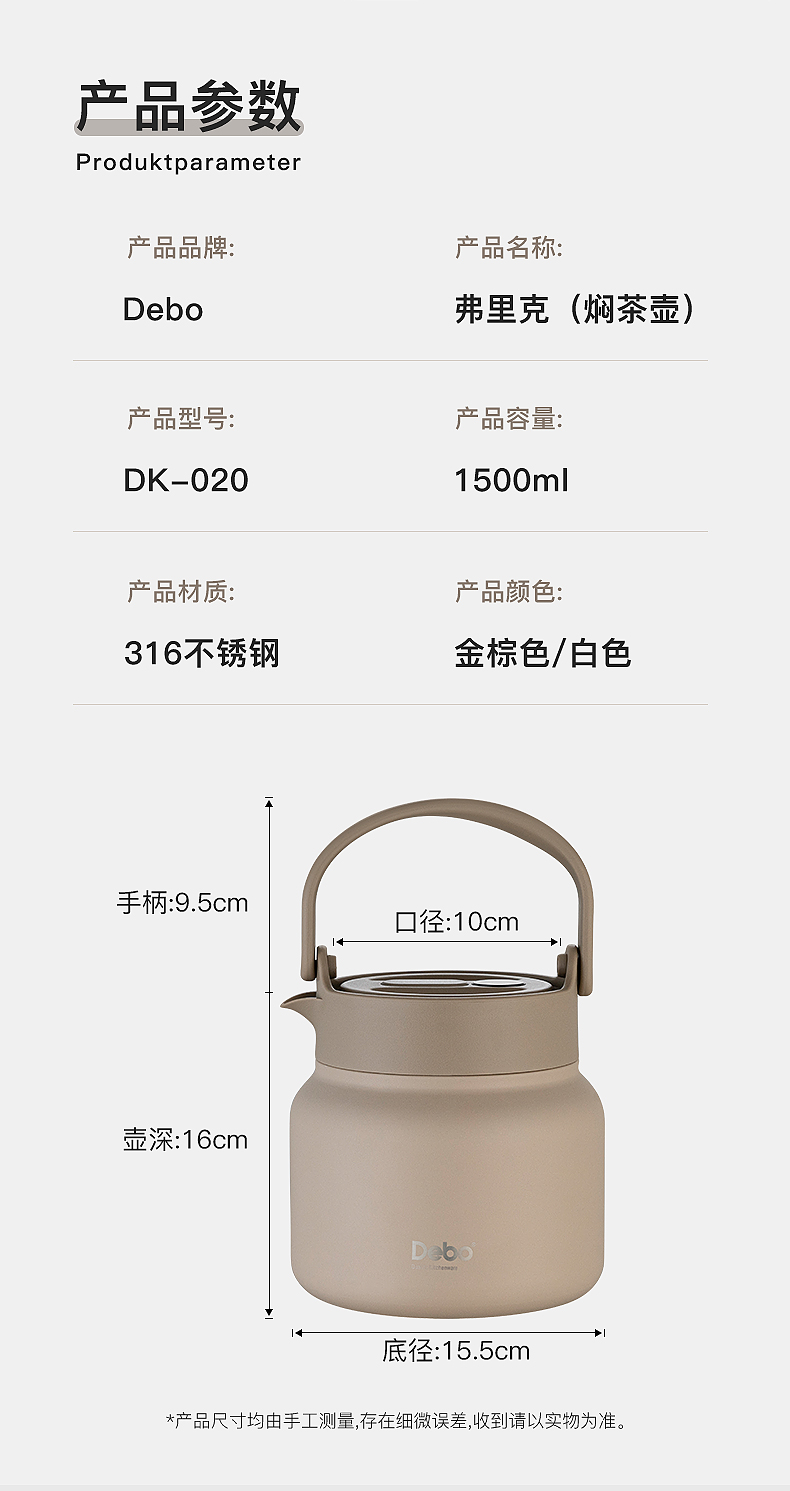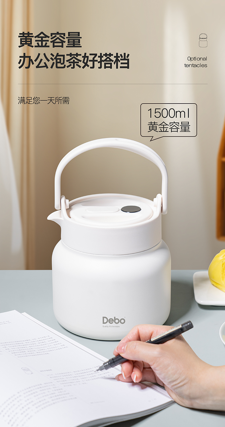 Debo德铂-弗里克真空焖茶壶1.5L 多种茶品放心泡 316不锈钢医用级内胆 超强耐腐蚀