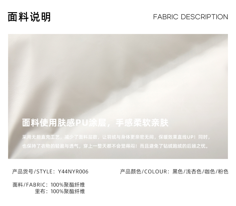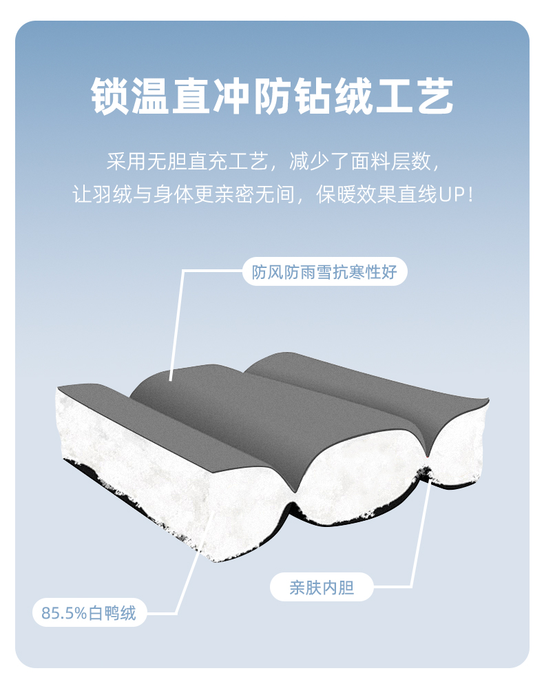 YKYB冬季新款无胆直充防泼水防风柔软肤保暖轻盈透气白鸭绒羽绒服Y44NYR006