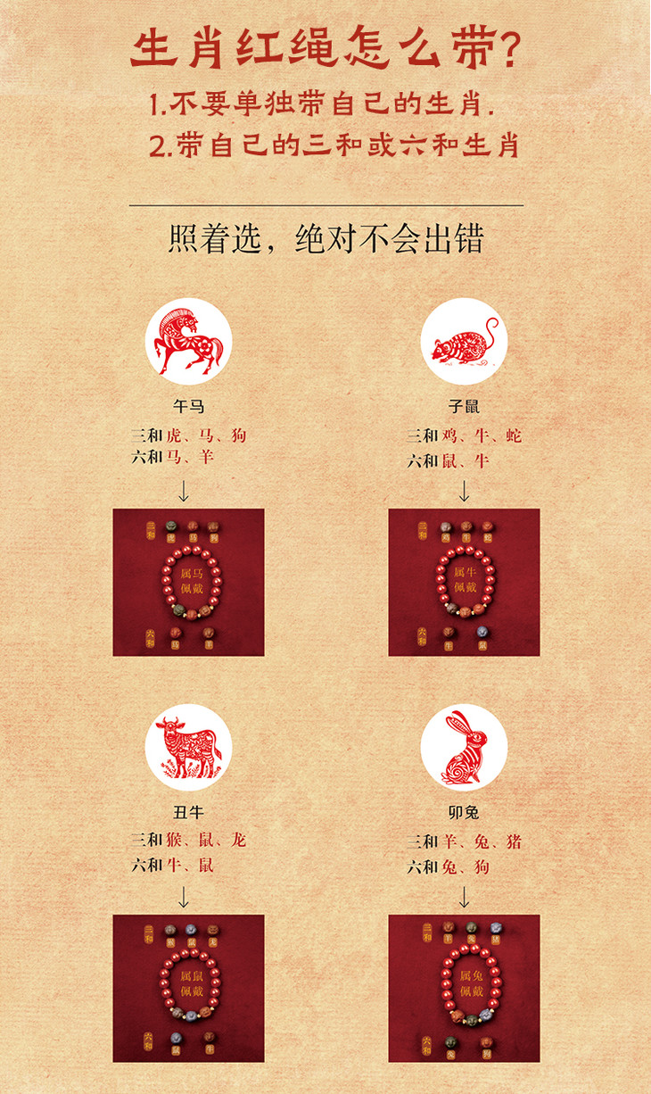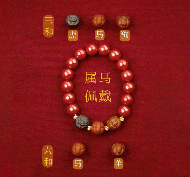 我们在选择生肖手串时,建议可以选择自己三和或者六和生肖佩戴。