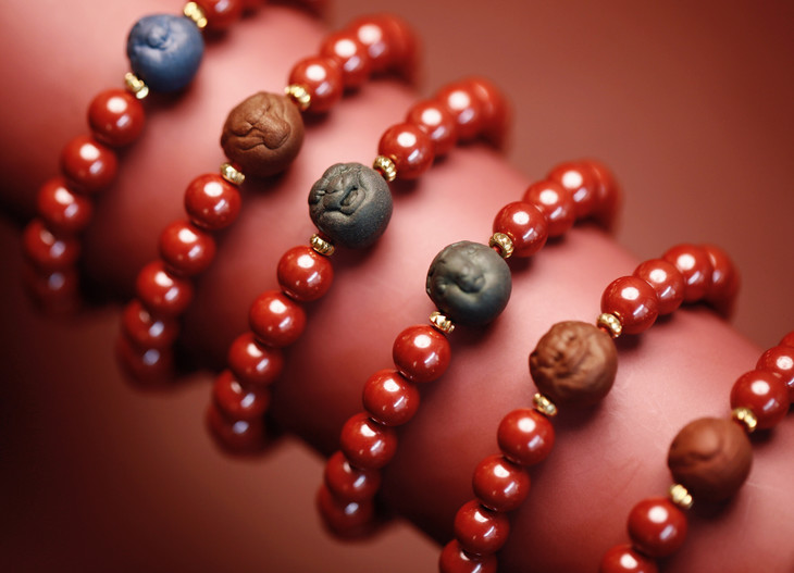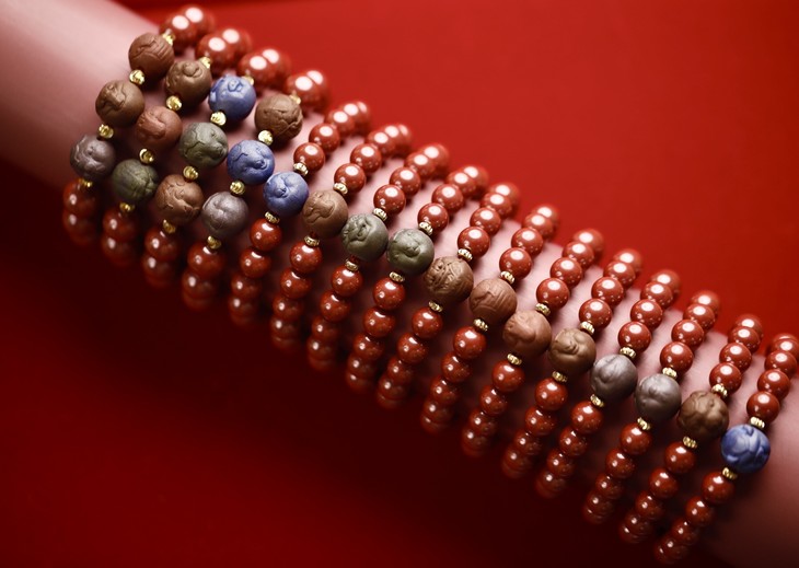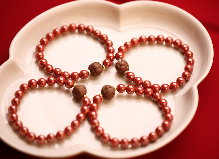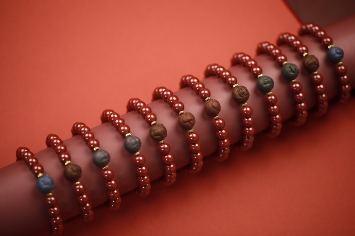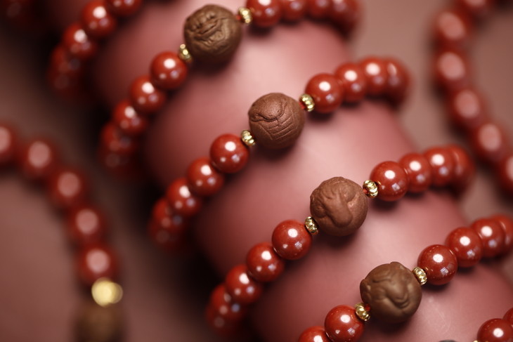 一颗颗小巧的朱砂,在匠人们灵巧的手指间串起,将新一年对平安、福禄、守护的祈愿融入在这一特别的手串当中。