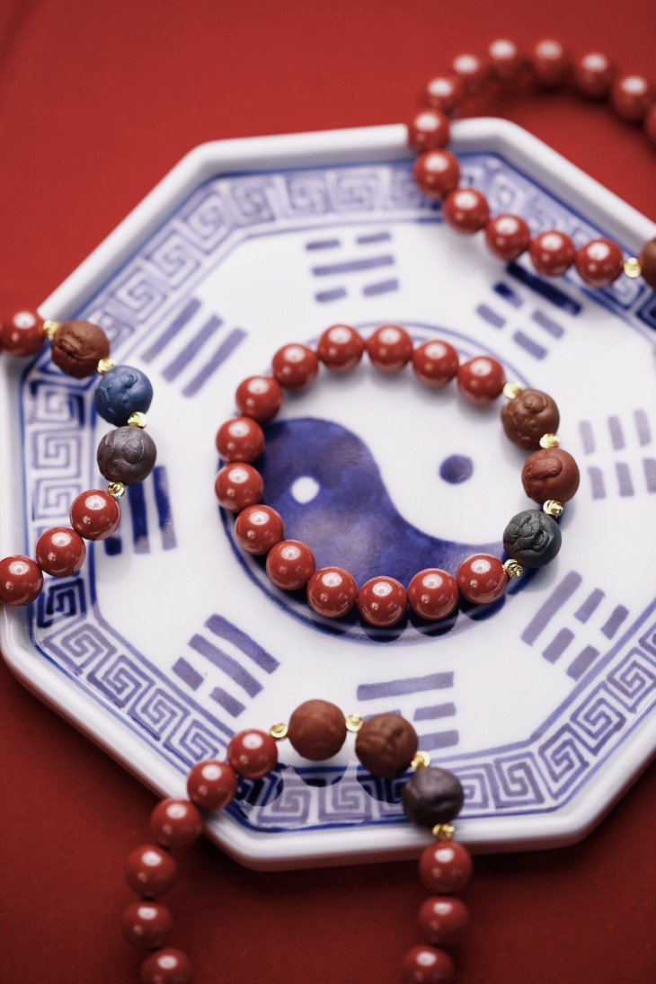 五行真气充满了古人的阴阳哲学和养身智慧,将其融入十二生肖合香珠中,成了这款五方朱砂生肖合香珠手串。