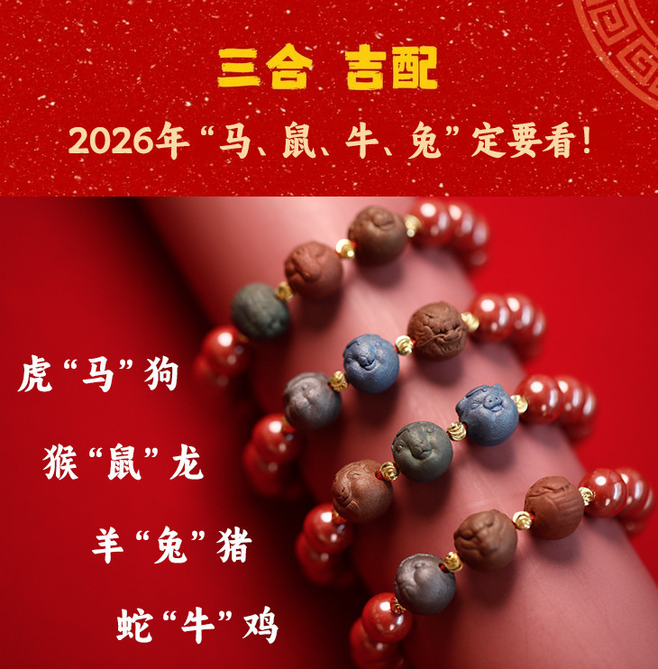 对于在2025年需要特别关注的四大生肖(马、鼠、牛、兔),杜掌柜特别为这四个生肖,定制了一款三和生肖朱砂手串。
