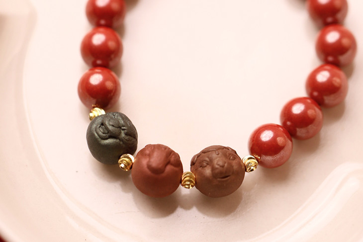 这款手绳,由三颗生肖香珠组成,分别由两颗三和生肖香珠,以守着本生肖的姿态成串。