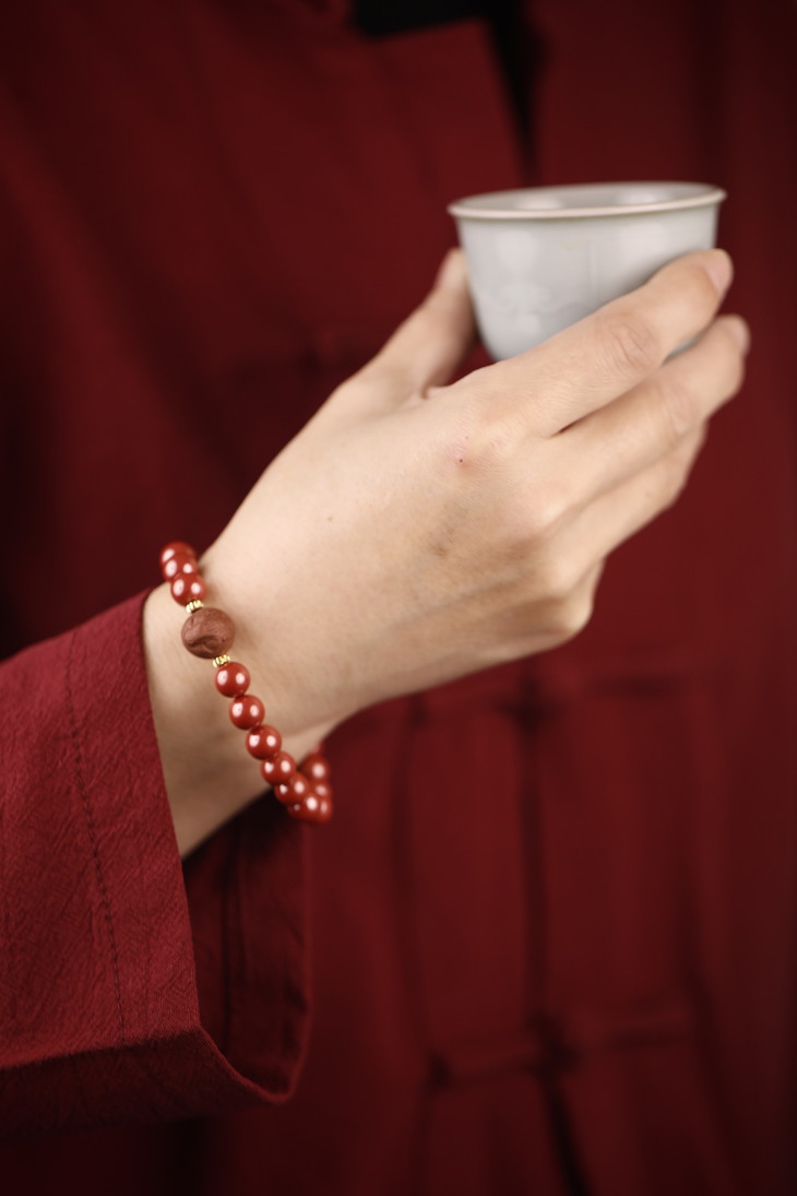 ○以帝王砂为串,中国人的喜庆红色,光泽感满满,每一件都是手艺诚心之作。佩戴腕间时髦、时尚、风雅。