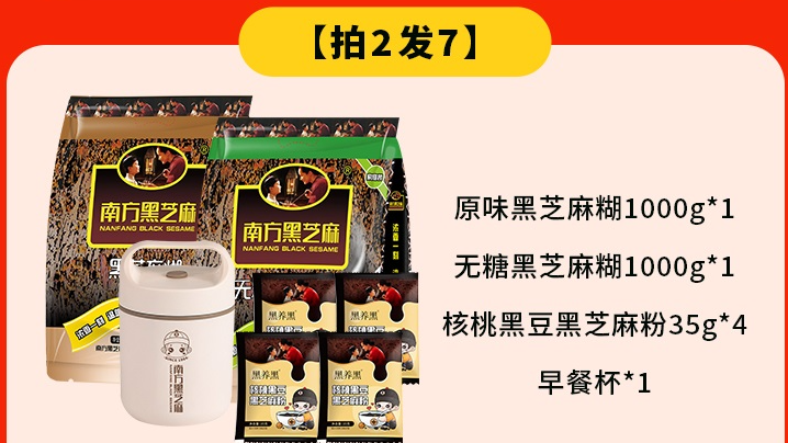 【719大礼包】南方黑芝麻糊大礼包 无糖/经典原味4斤装(2000g)+送早餐杯+送核桃黑豆粉35g*4袋