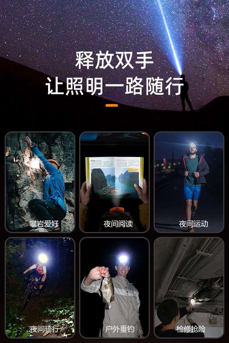 猎友充电式头戴式夜钓灯(三色可选)