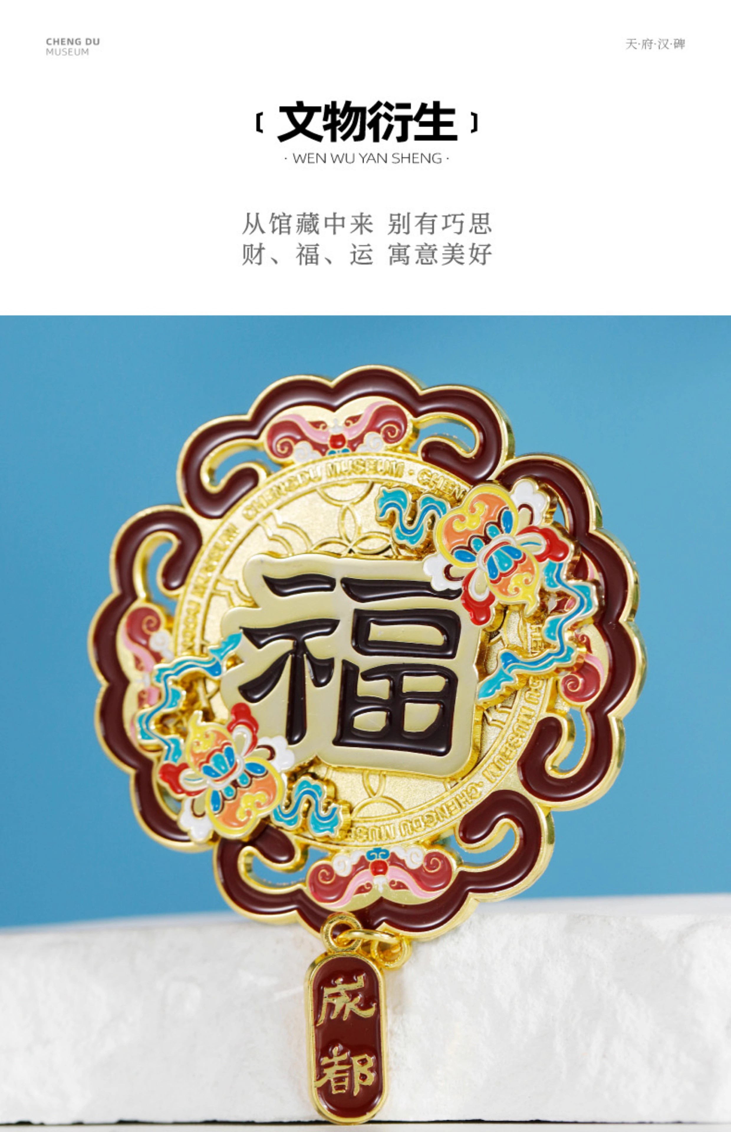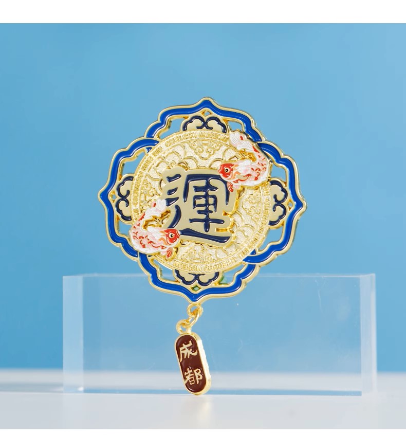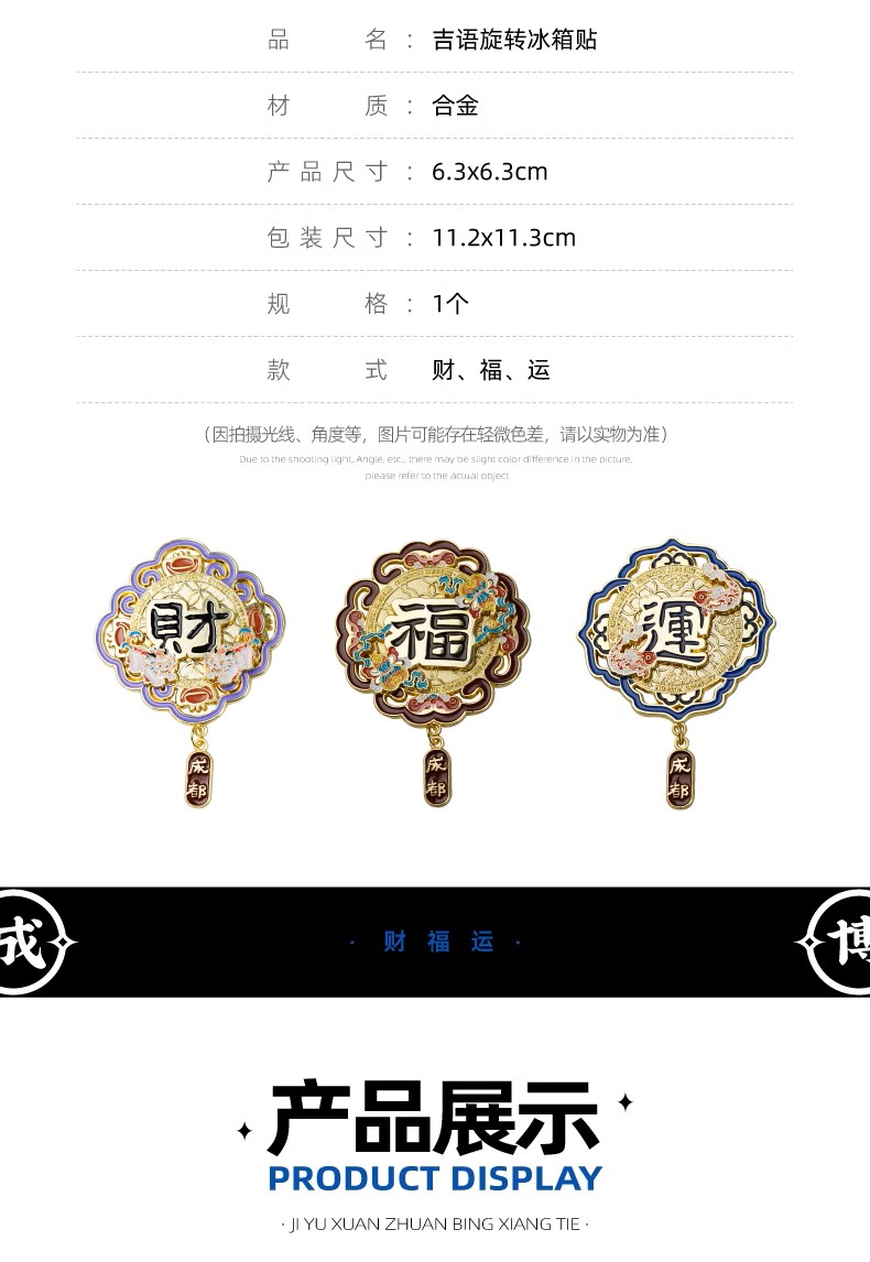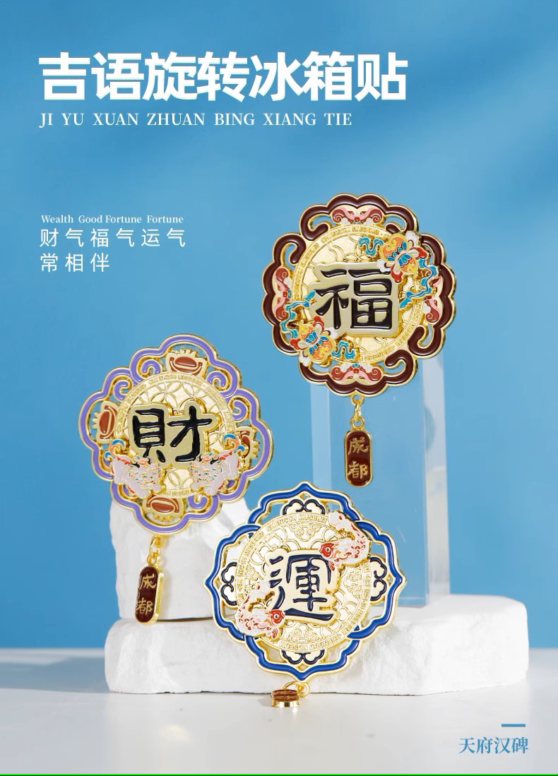 成都博物馆 财福运双层金属旋转冰箱贴 博物馆文创成都纪念品礼物