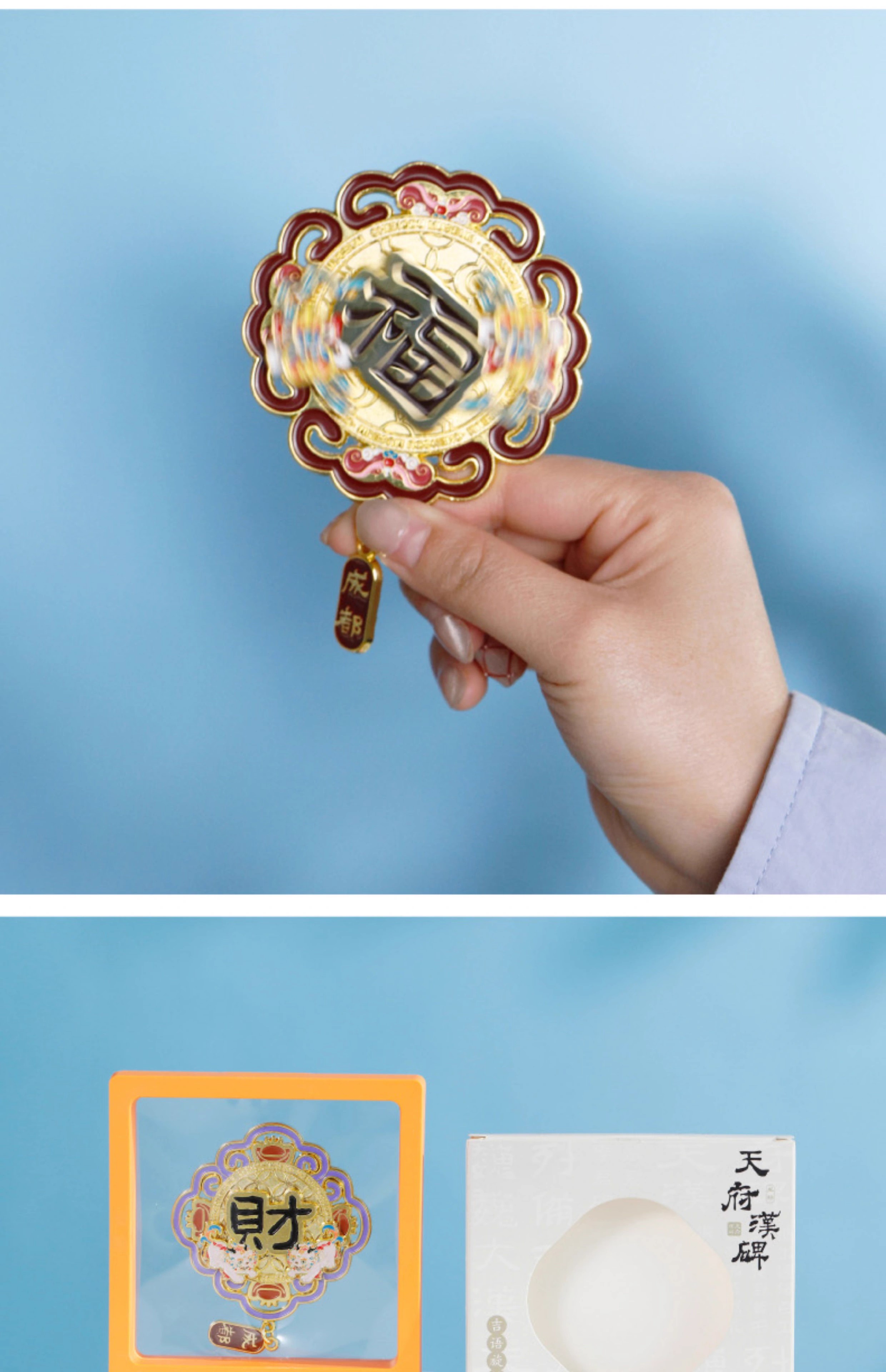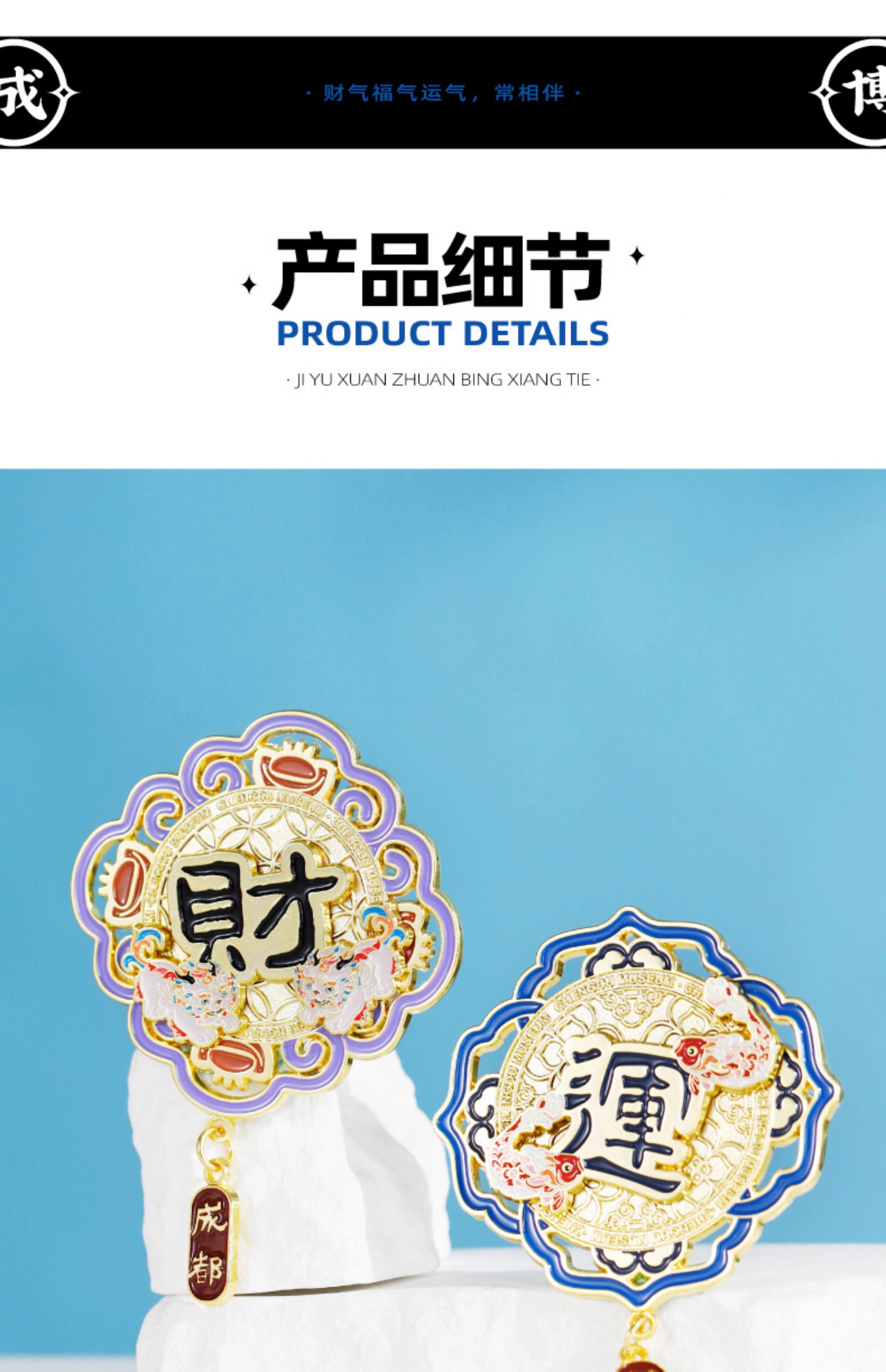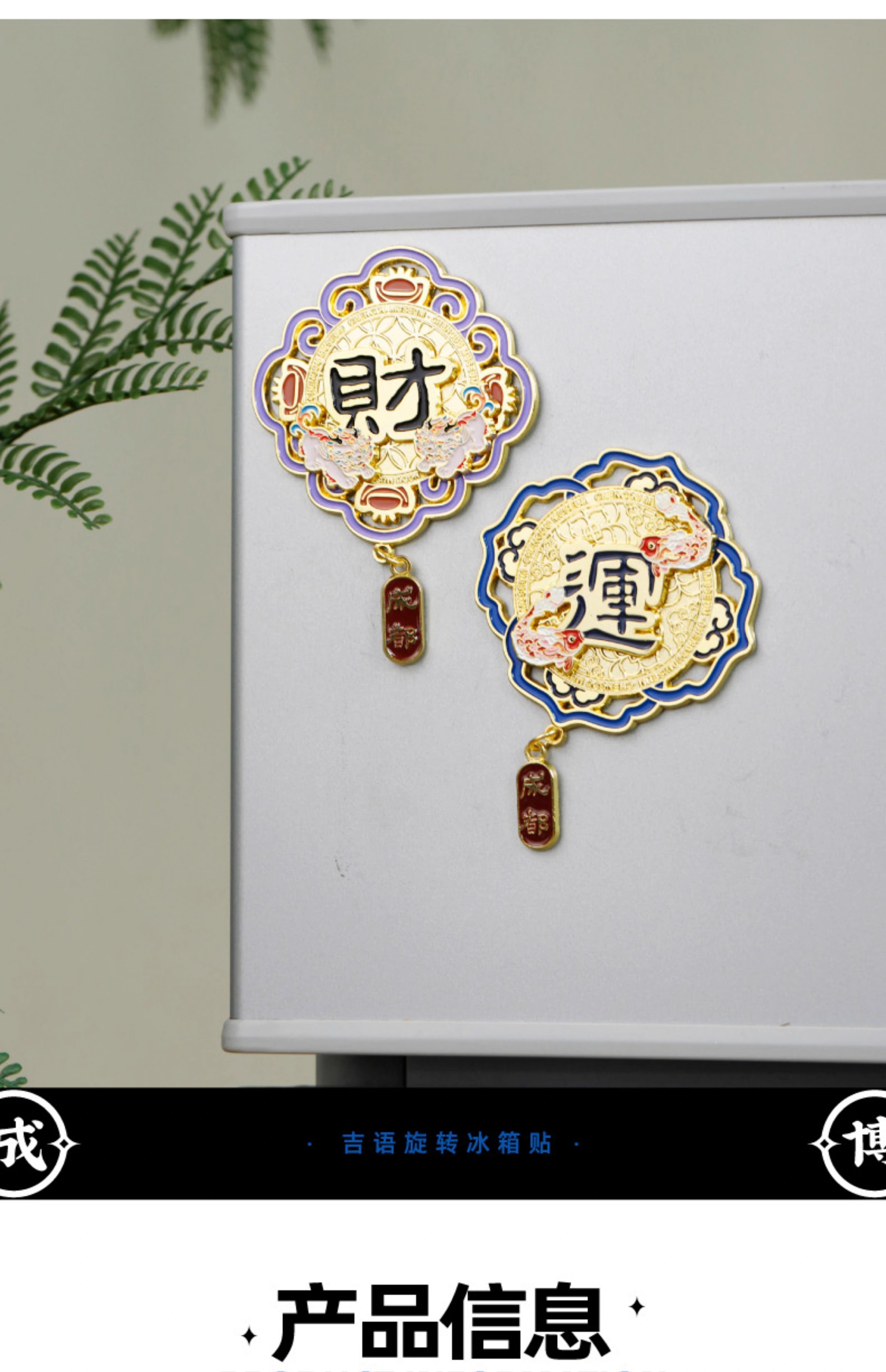 成都博物馆 财福运双层金属旋转冰箱贴 博物馆文创成都纪念品礼物