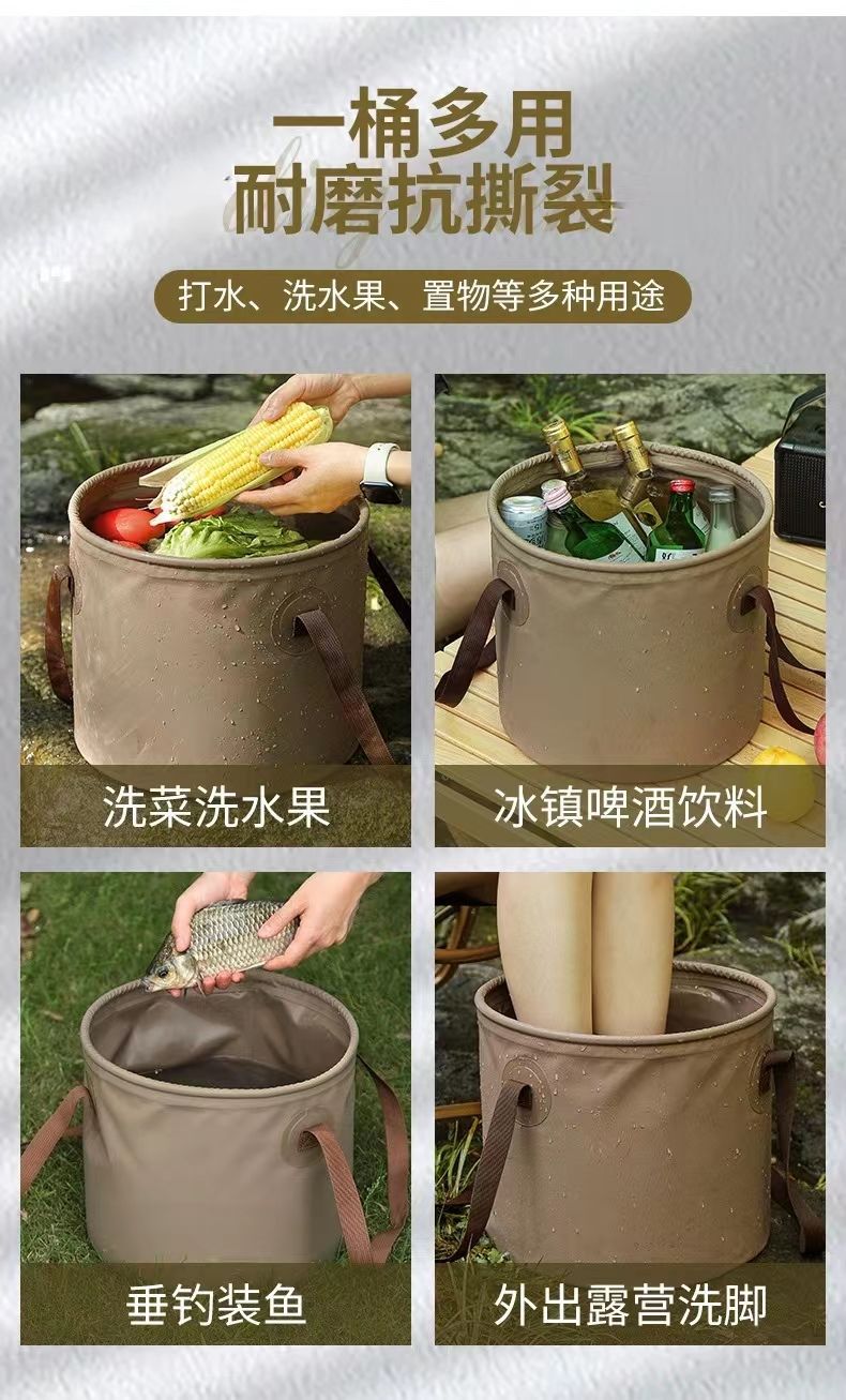 【多功能折叠桶】多功能桶,不止于桶,更似于魔法盒。开启它,你将获得无限可能。冬日暖洗泡脚,夏日凉露垂钓,旅途中车载置物。它是户外摇篮,更是旅行必备,一桶搞定一切!