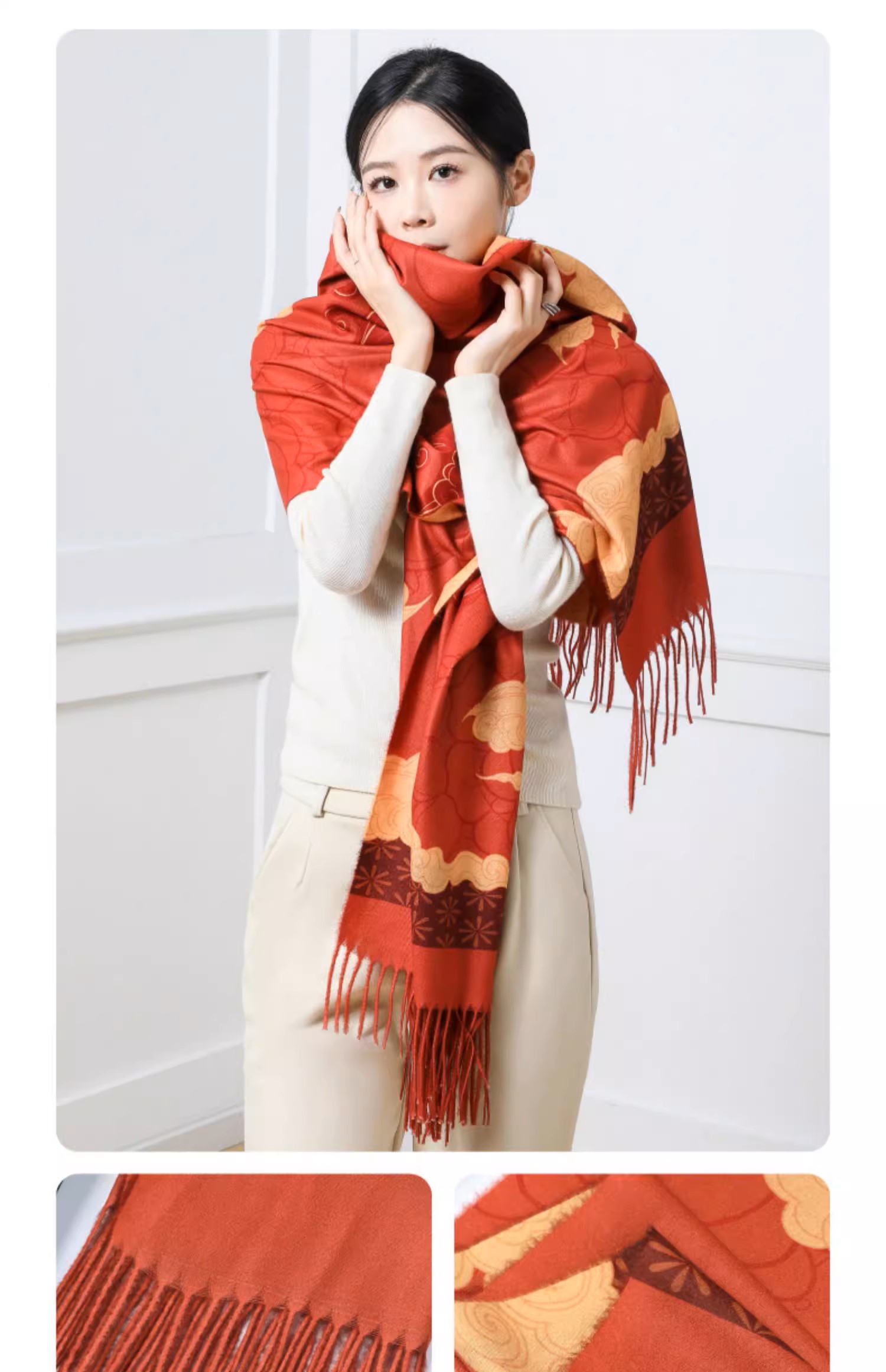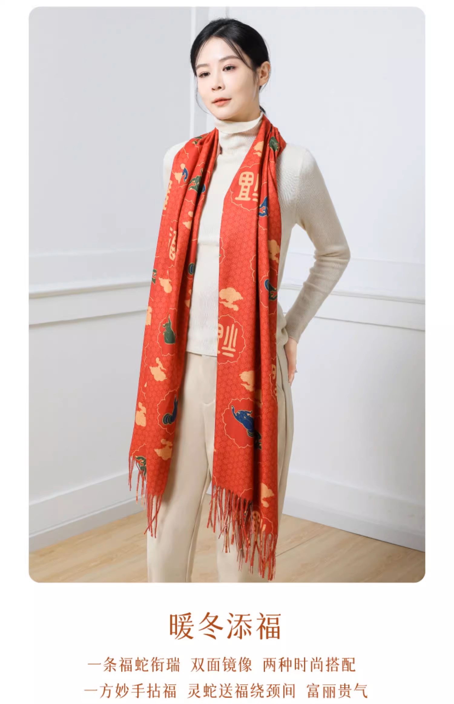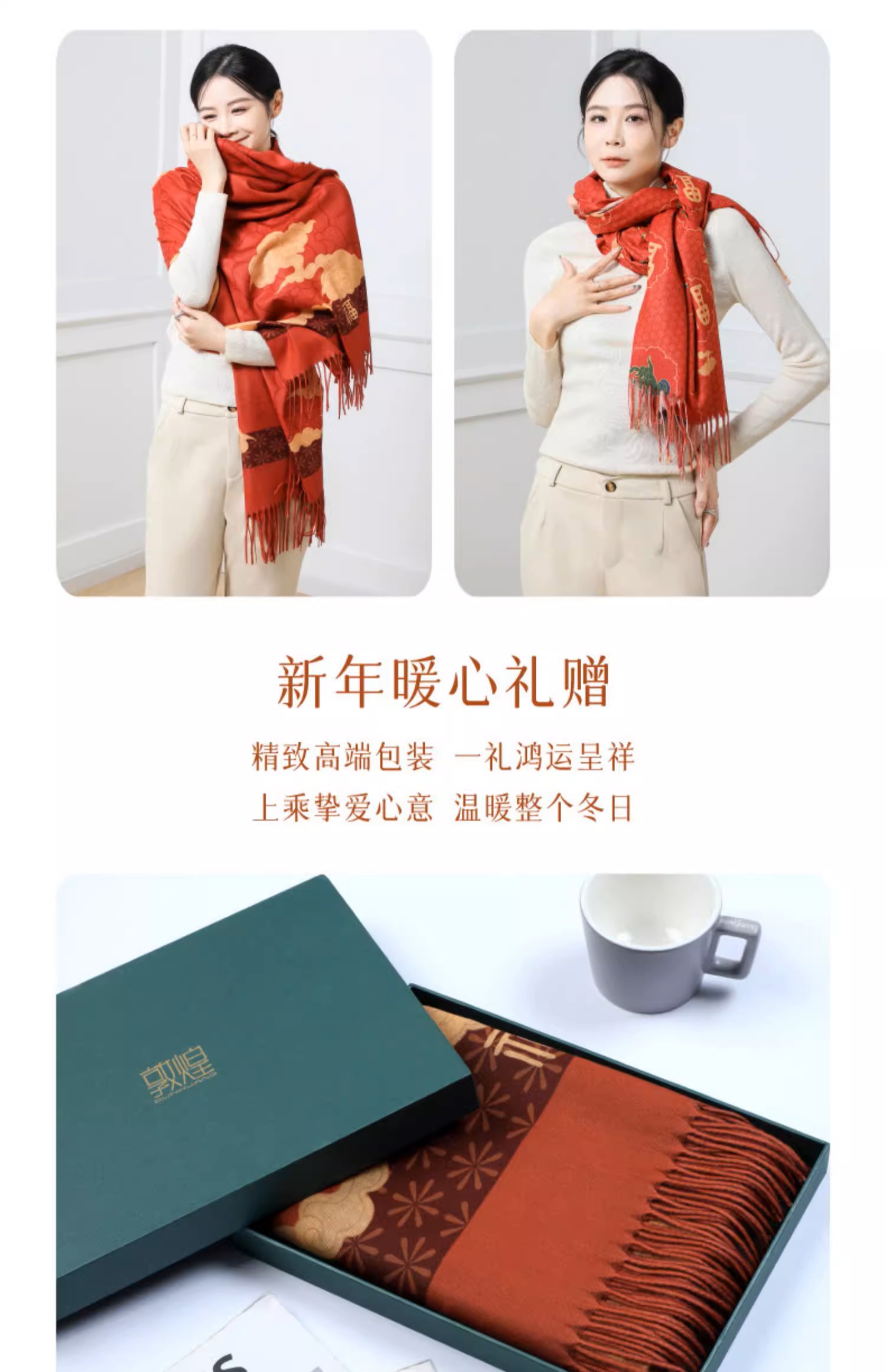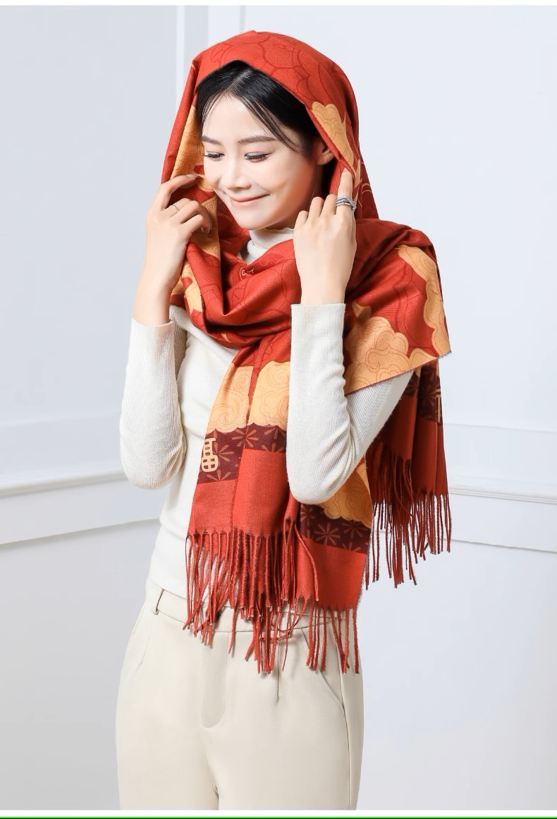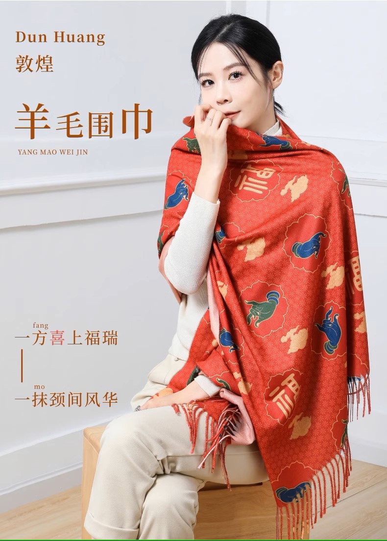 敦煌研究院 敦煌羊毛围巾 女款2024新款冬季围巾披肩两用高级感