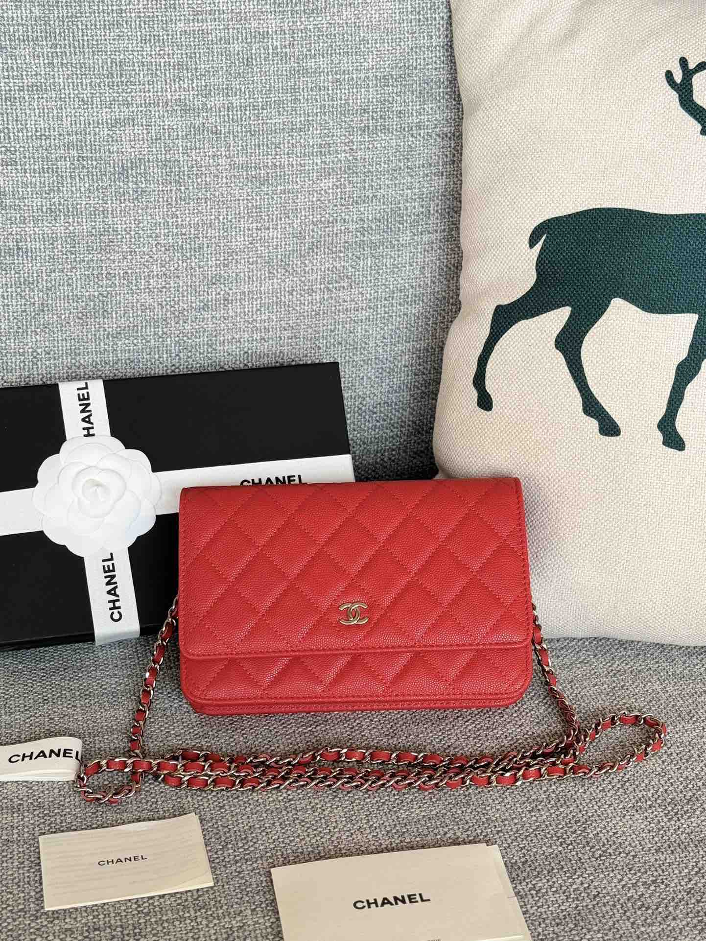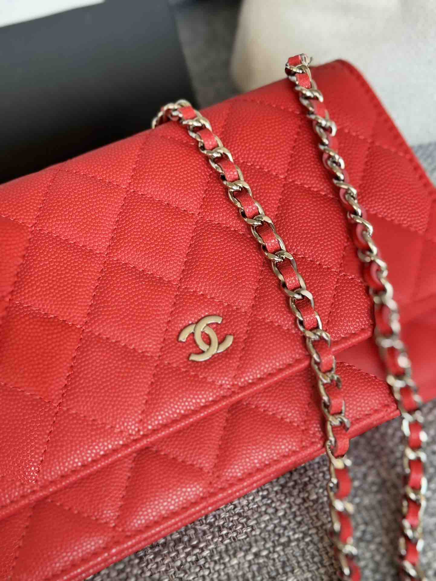 香奈儿woc链条包🉐️牛皮-红色银扣(⚠️细球纹)