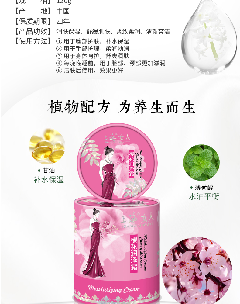 上海女人樱花润泽霜120g