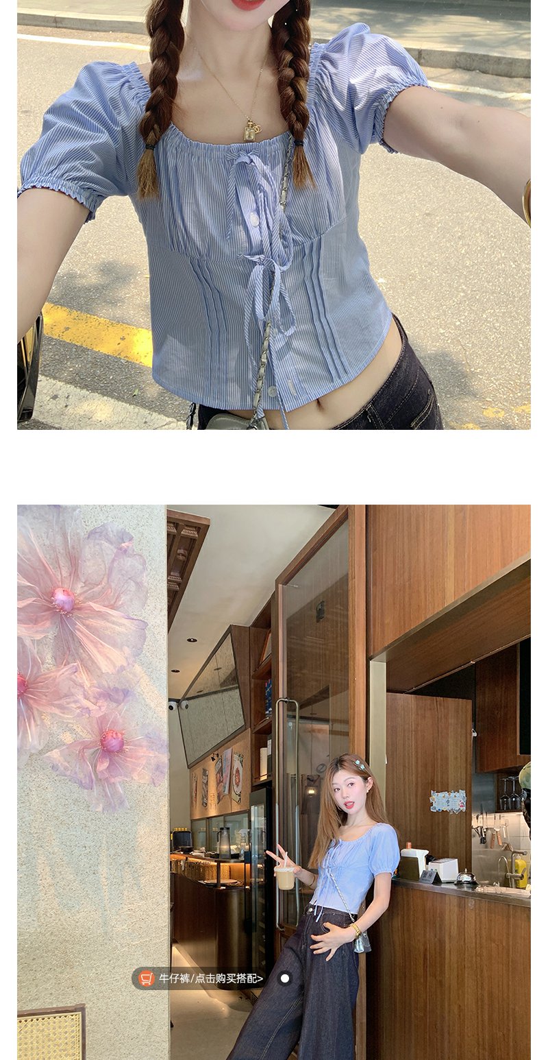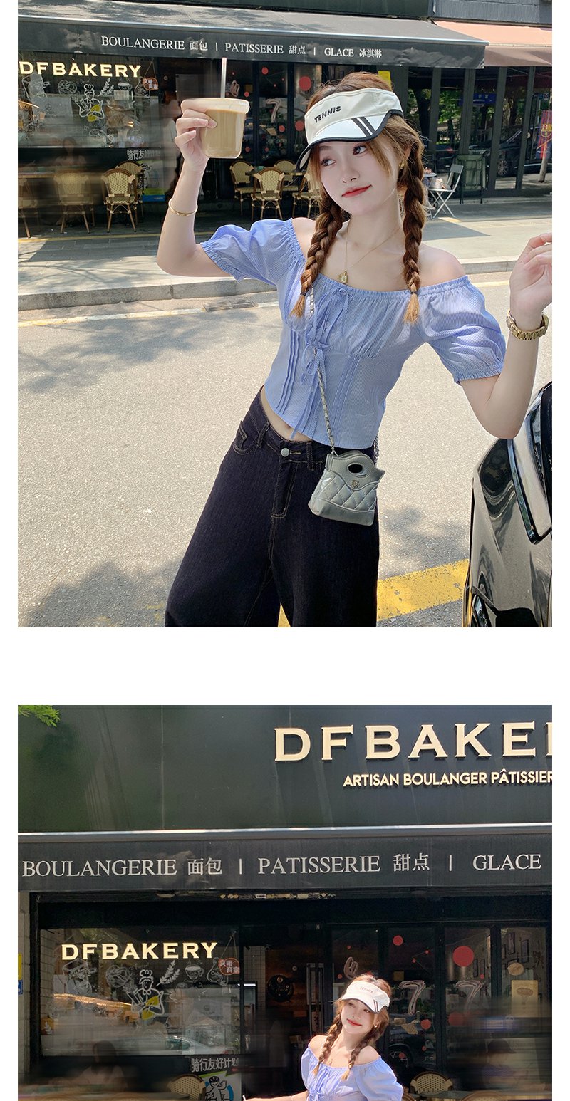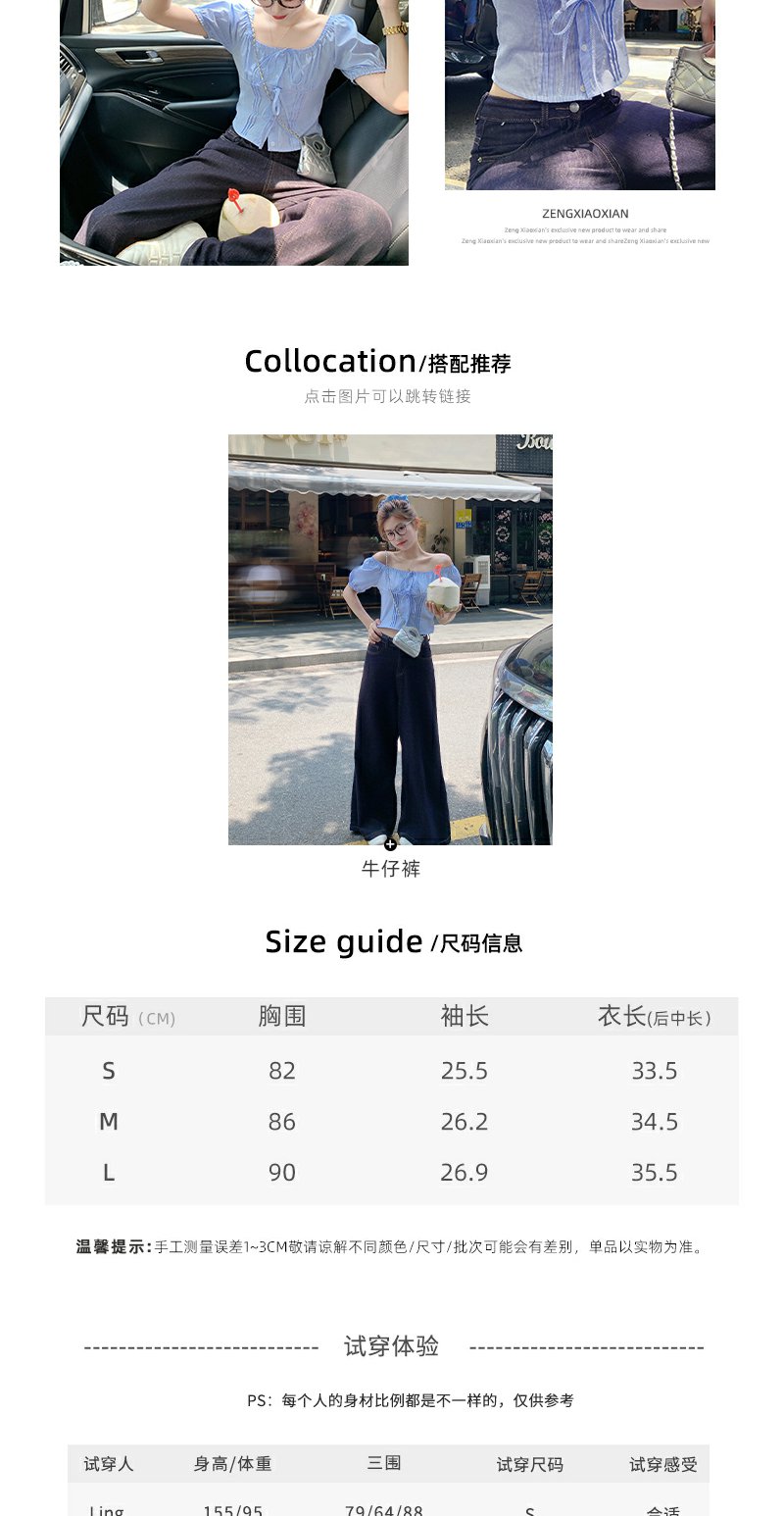 【110元任选2件】最后一波现货!一字肩短款条纹衬衫