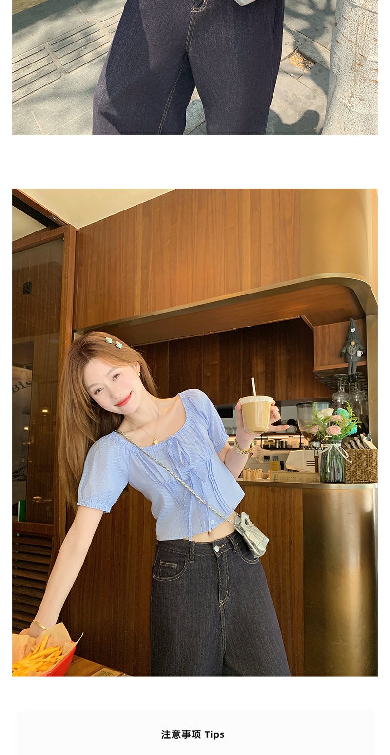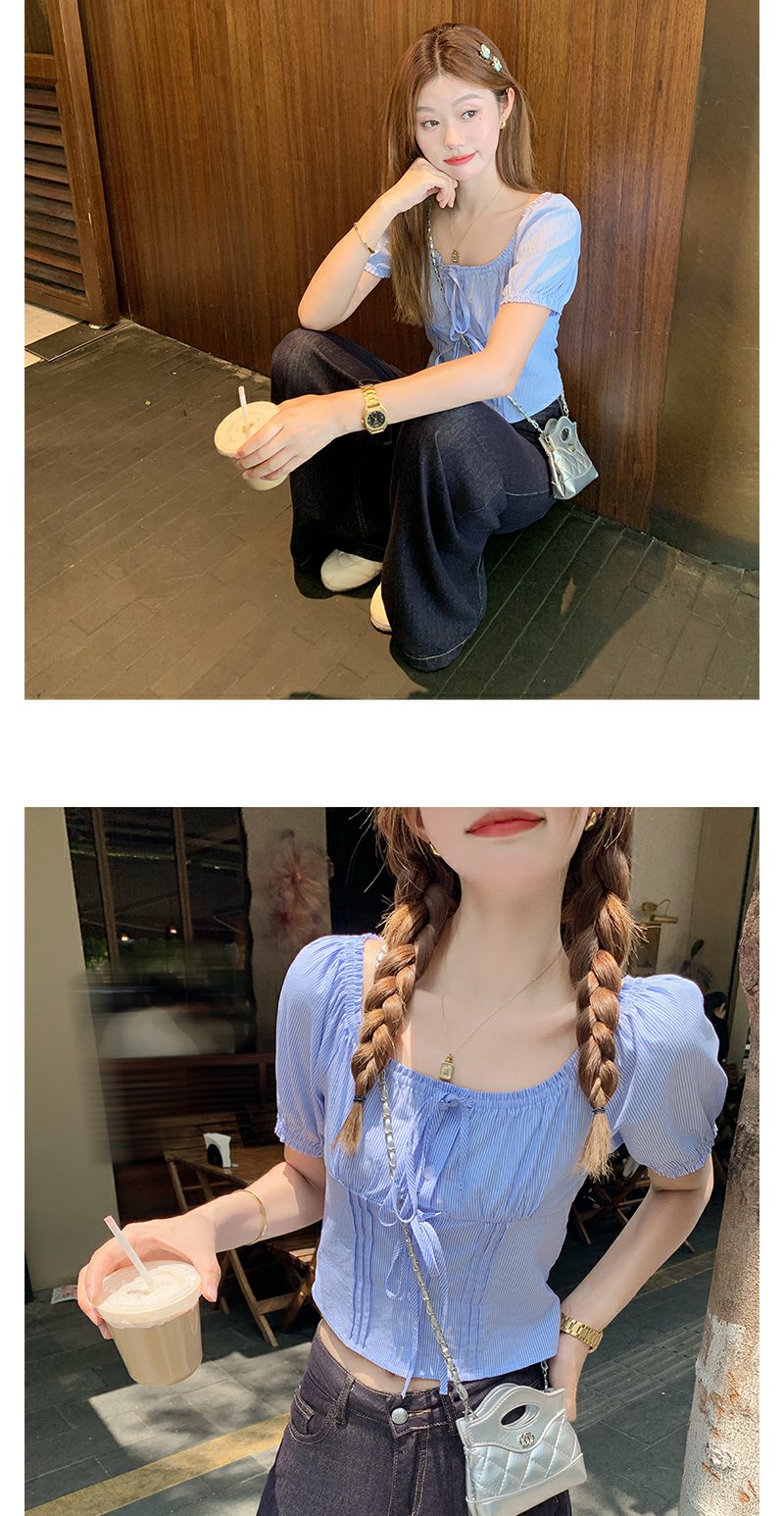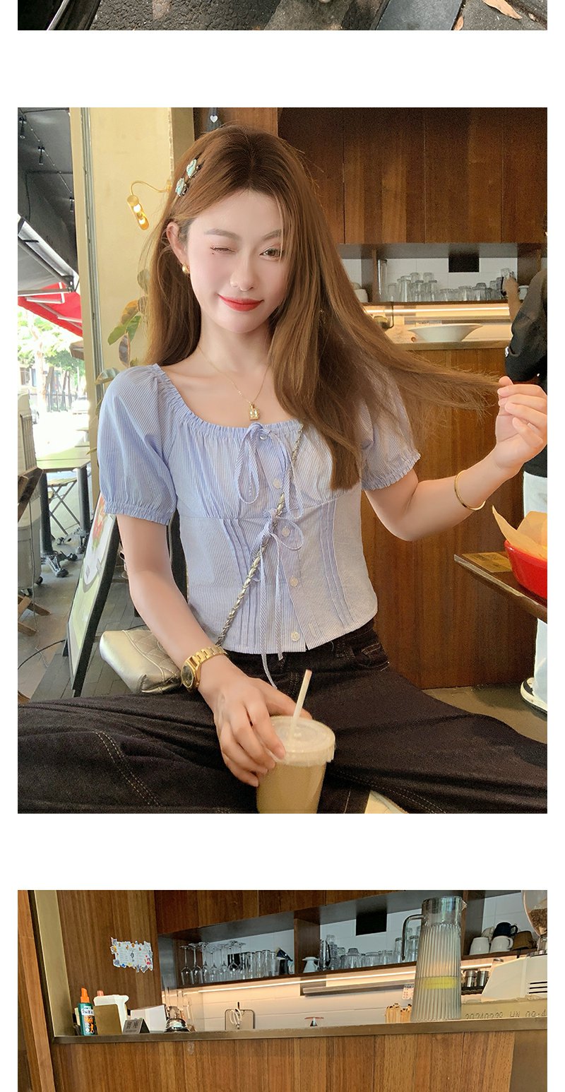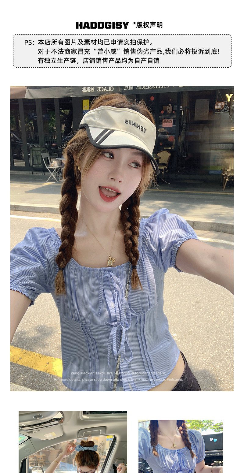 【110元任选2件】最后一波现货!一字肩短款条纹衬衫