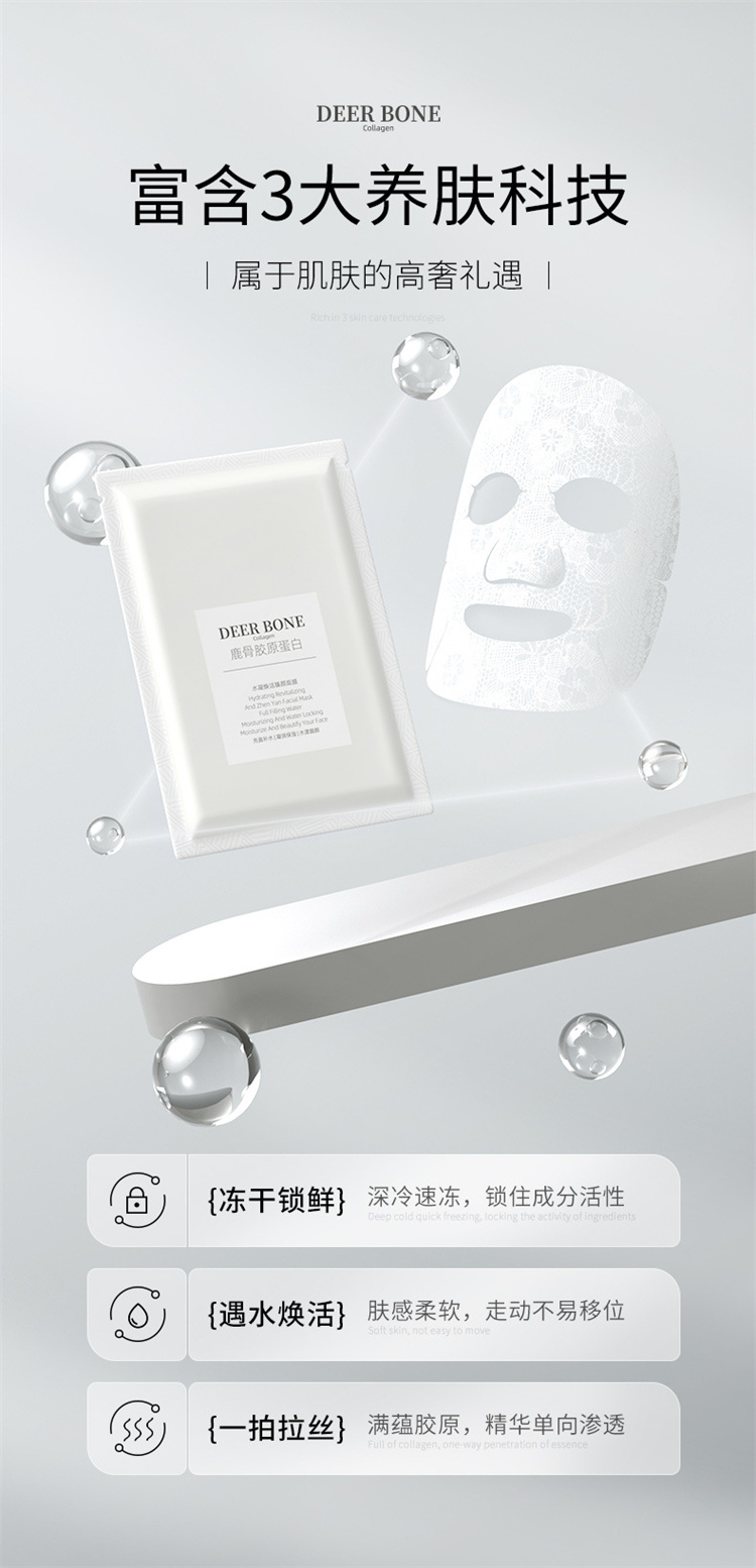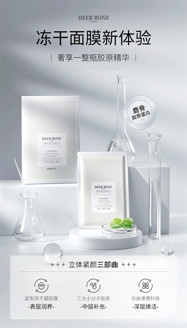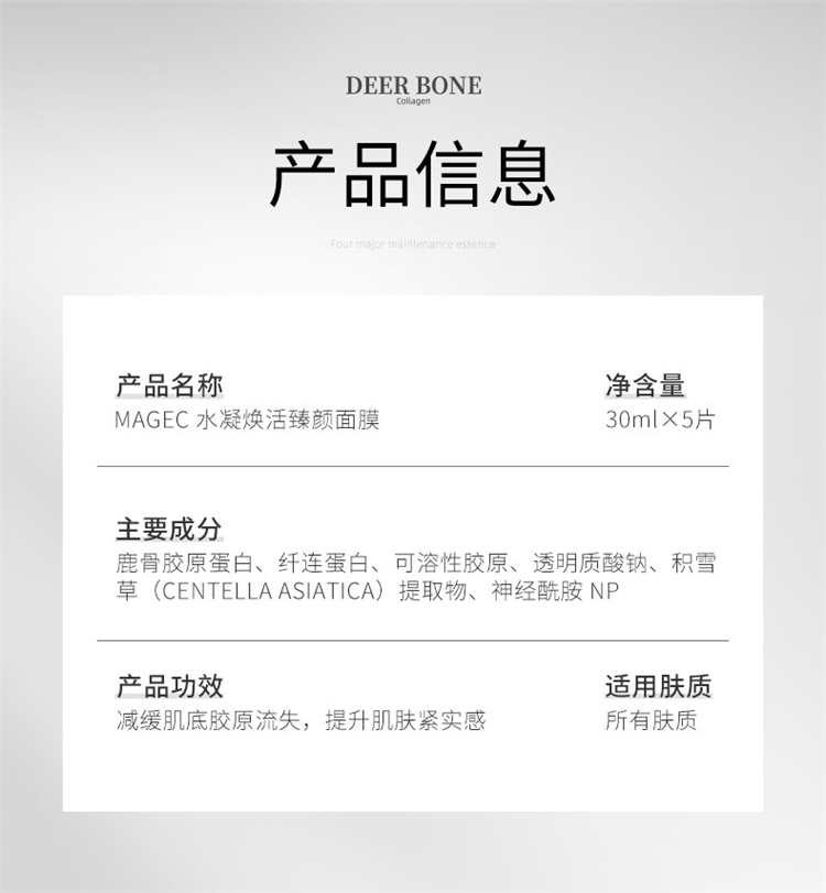 【自营】MAGEC鹿骨胶原蛋白水凝焕活臻颜冻干面膜 舒缓呵护控油滋养保湿补水亮肤面膜男女护肤适用 1g*5片