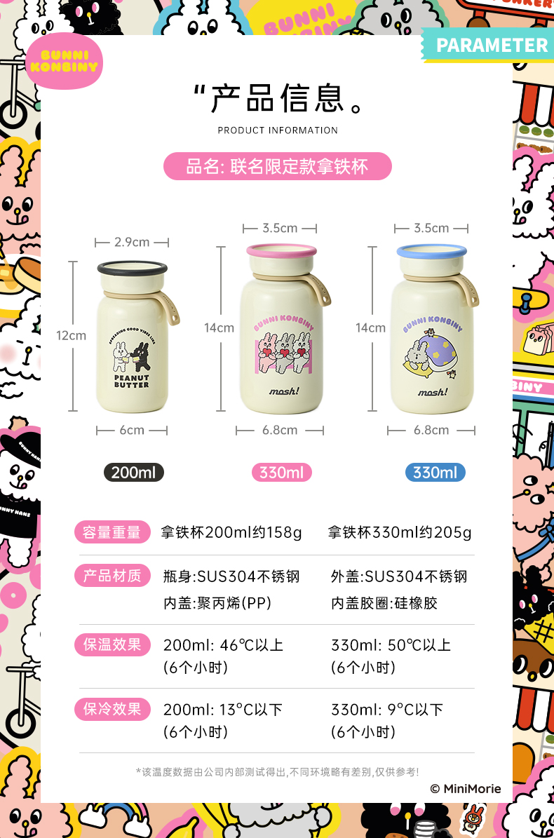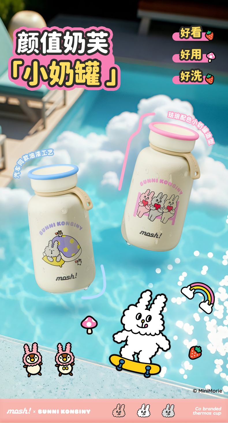mosh兔子便利店联名款DMLB迷你保温杯女生高颜值水杯子小巧便携拿铁咖啡外带