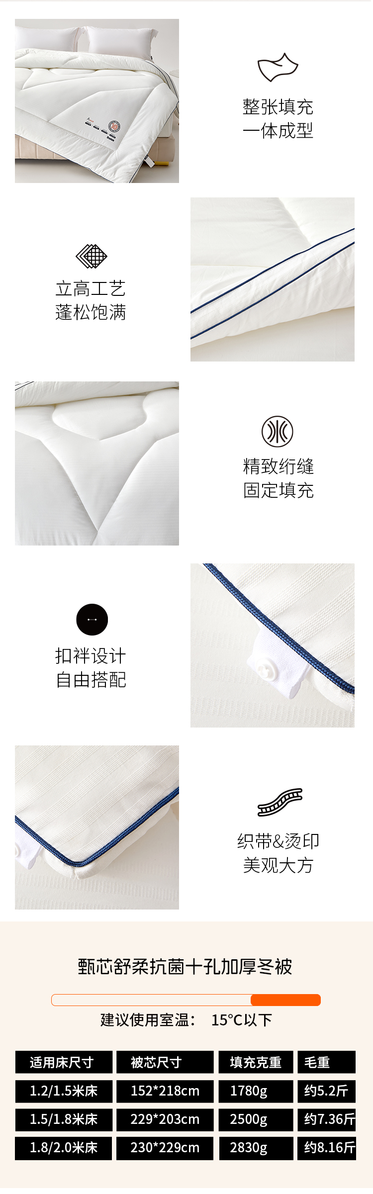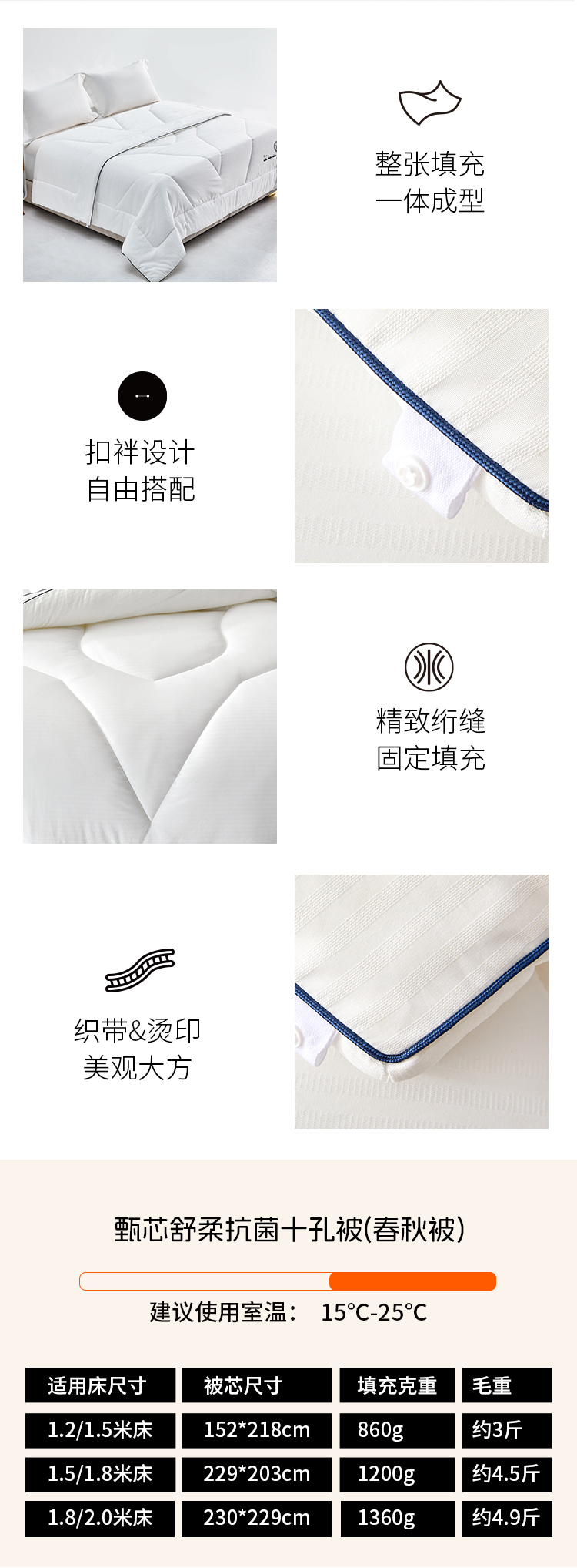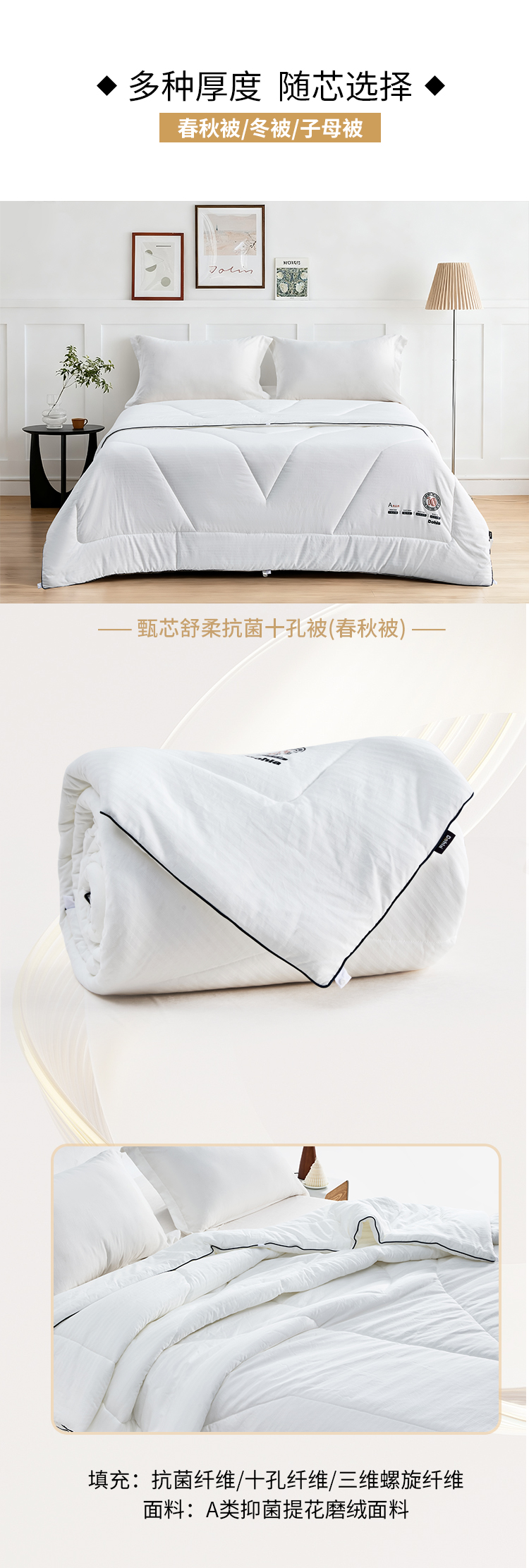 多喜爱 甄芯舒柔抗菌十孔春秋被/冬被/(拉链款)子母被系列hl【十孔纤维】【抗菌纤维】【提花磨绒】【织带工艺】蓬松温暖 柔软细腻 多款厚度 立高工艺/FX