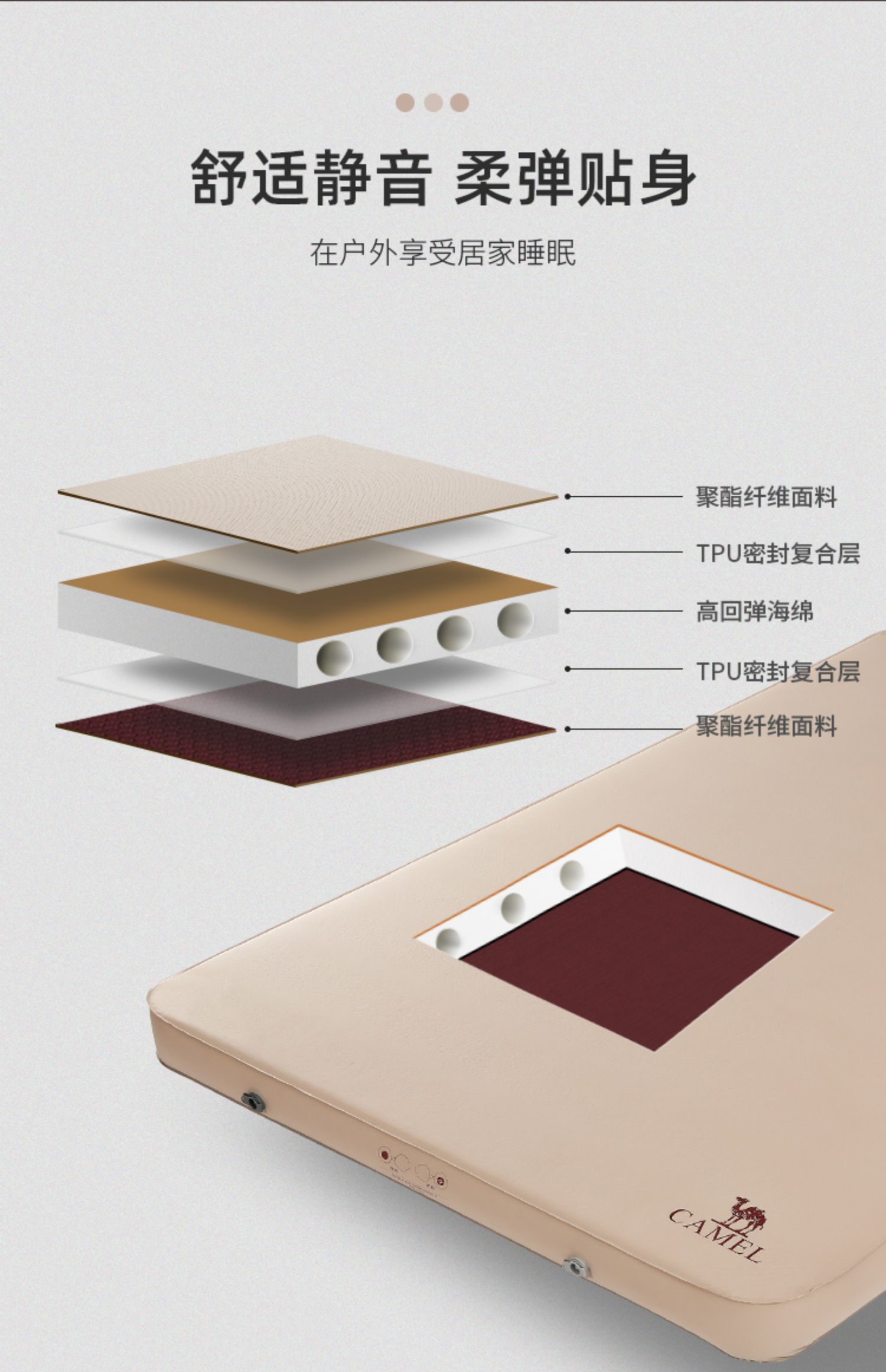 骆驼户外精致露营便携式睡垫帐篷防潮地垫加厚双人自动充气床垫 1J32265756
