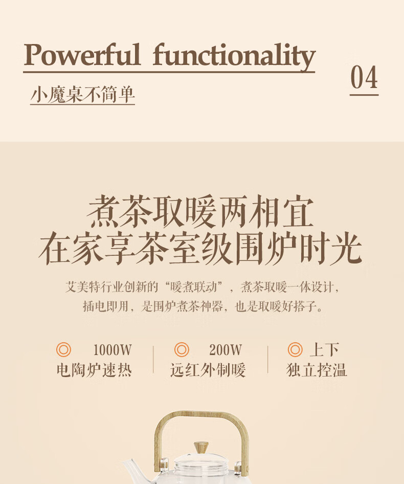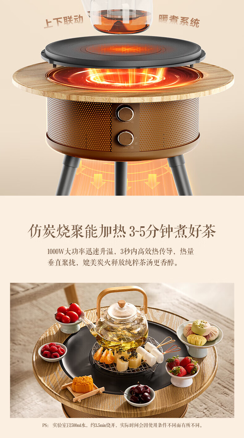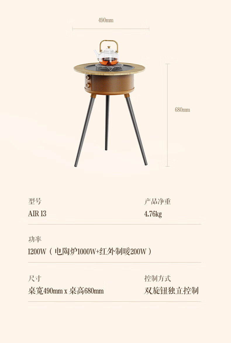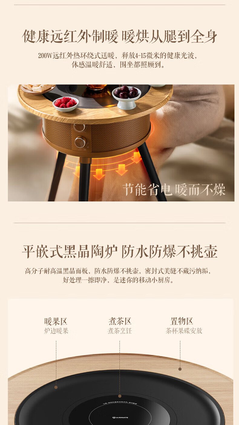 【小家电】艾美特围炉煮茶取暖器电暖器小太阳远红外加热电暖气片家用电暖桌电陶炉烧水煮茶火锅炉赠茶壶 AIR13 HF