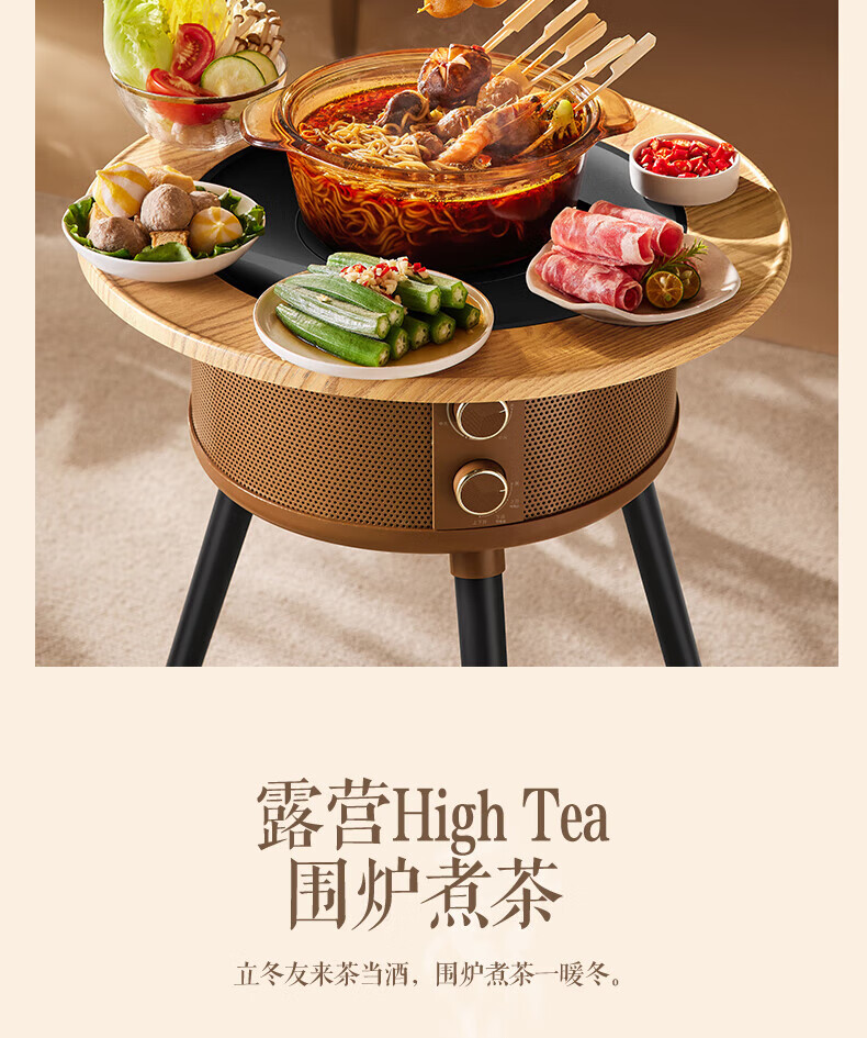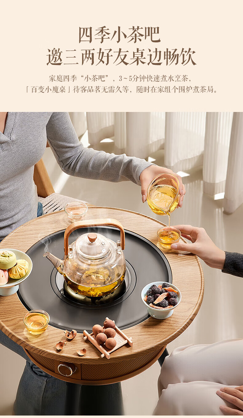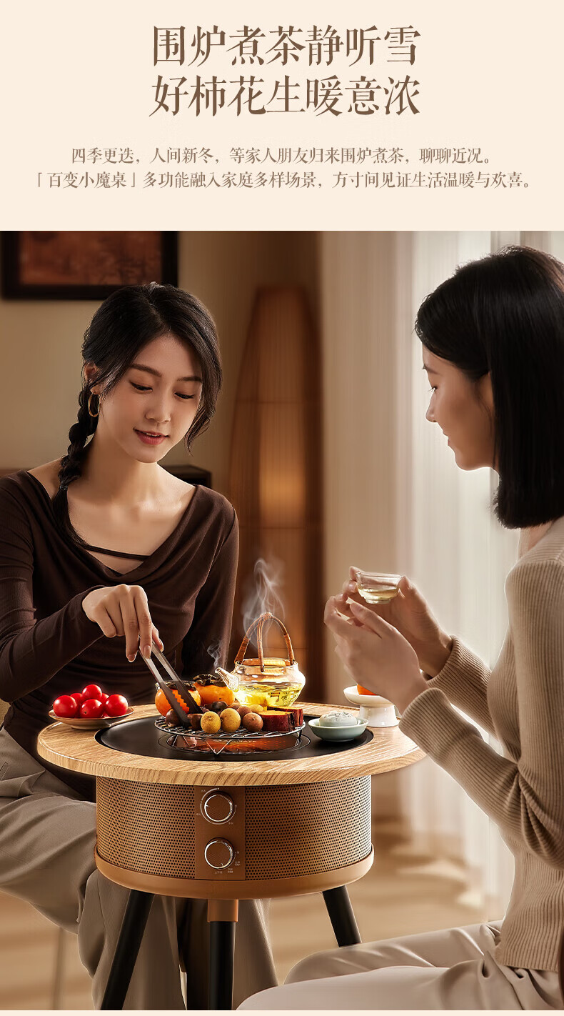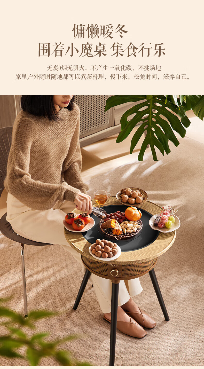 【小家电】艾美特围炉煮茶取暖器电暖器小太阳远红外加热电暖气片家用电暖桌电陶炉烧水煮茶火锅炉赠茶壶 AIR13 HF