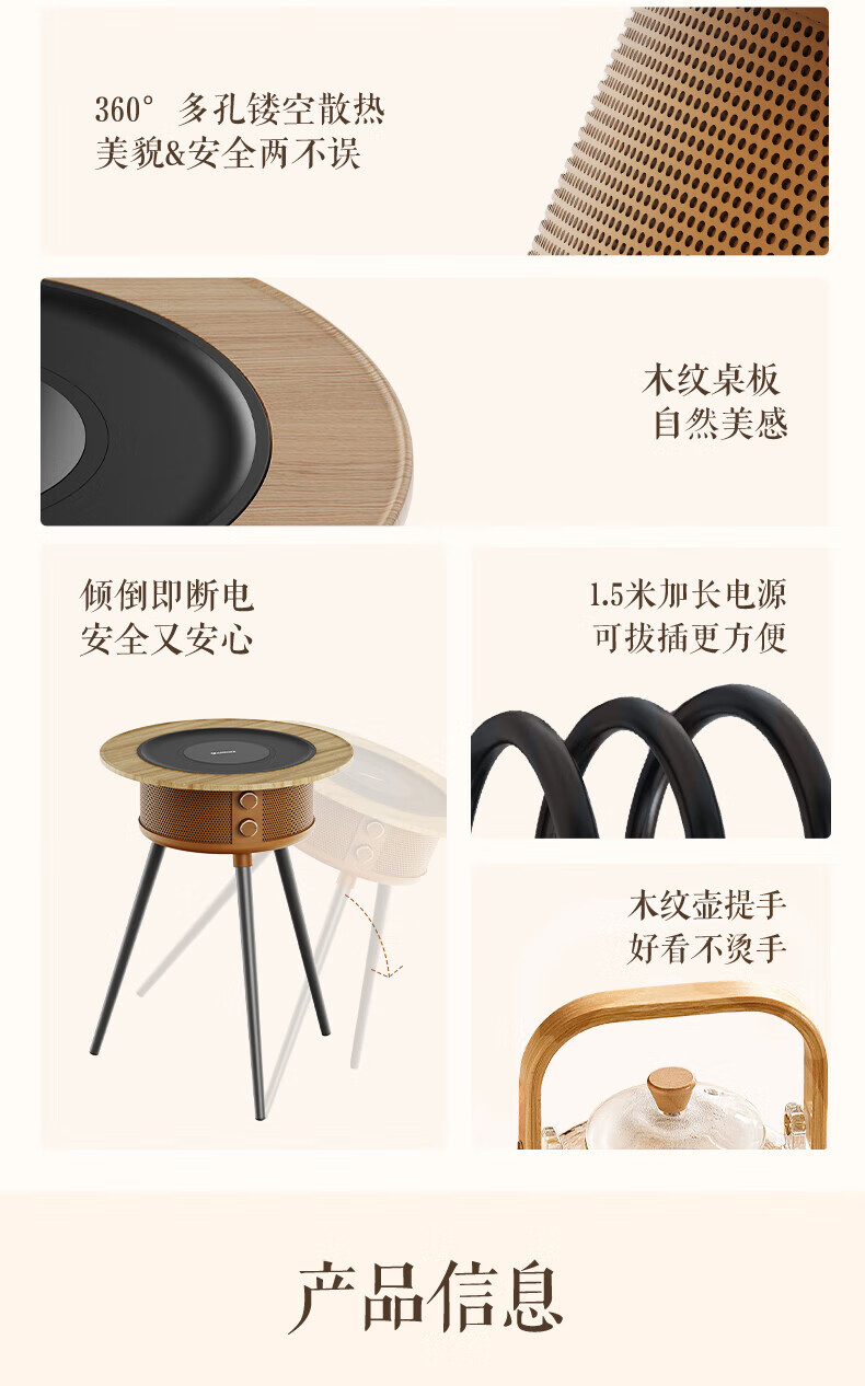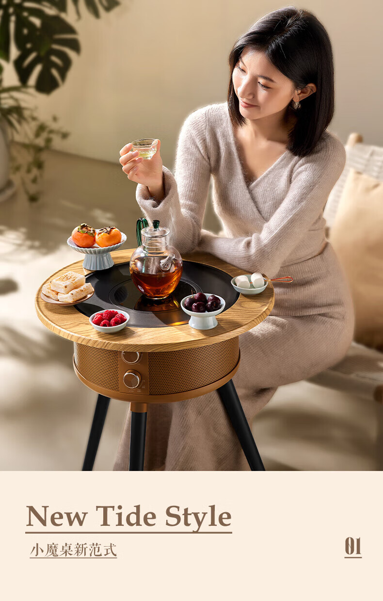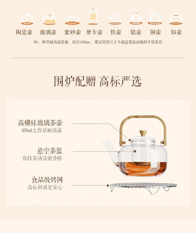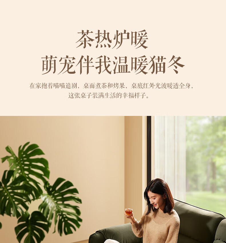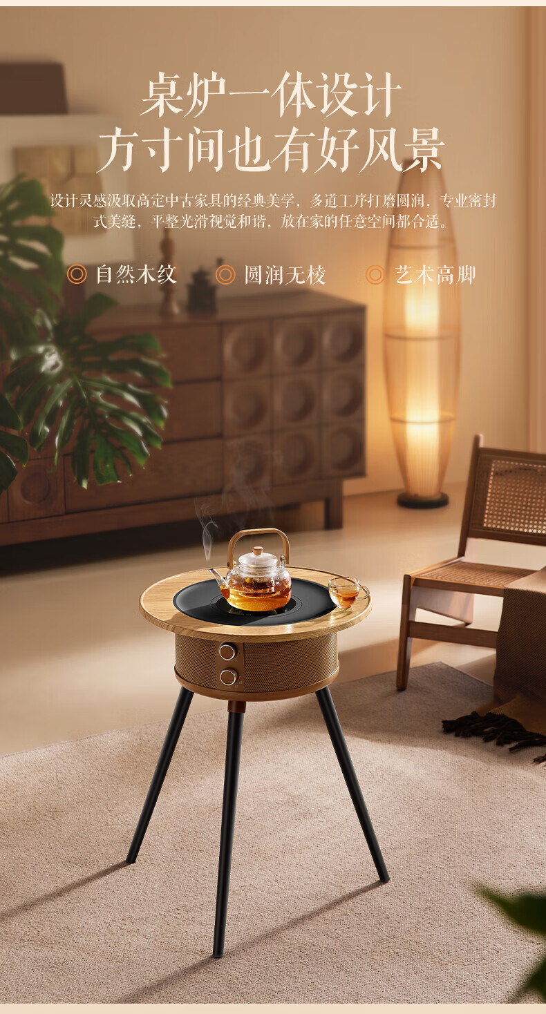 【小家电】艾美特围炉煮茶取暖器电暖器小太阳远红外加热电暖气片家用电暖桌电陶炉烧水煮茶火锅炉赠茶壶 AIR13 HF