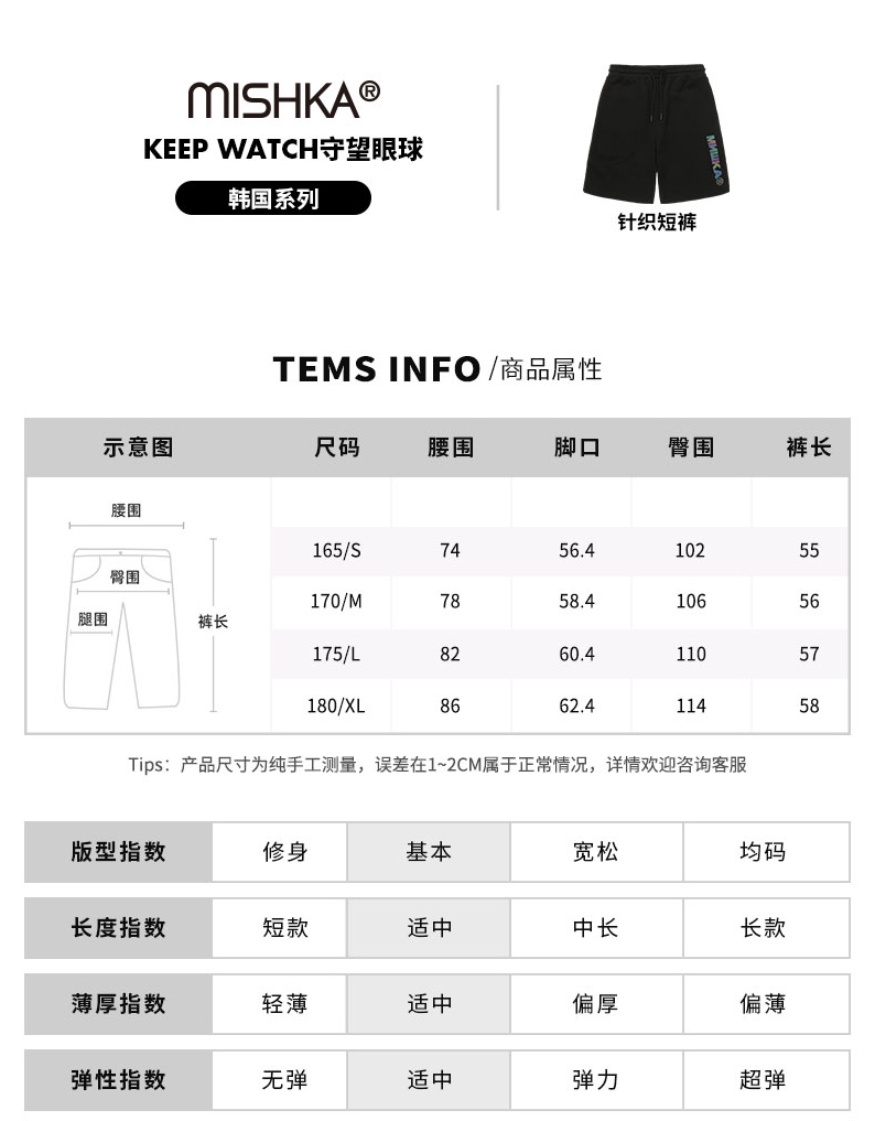 MISHKA大眼球潮牌2022春夏新品街头休闲运动短裤五分裤男女M21100892M