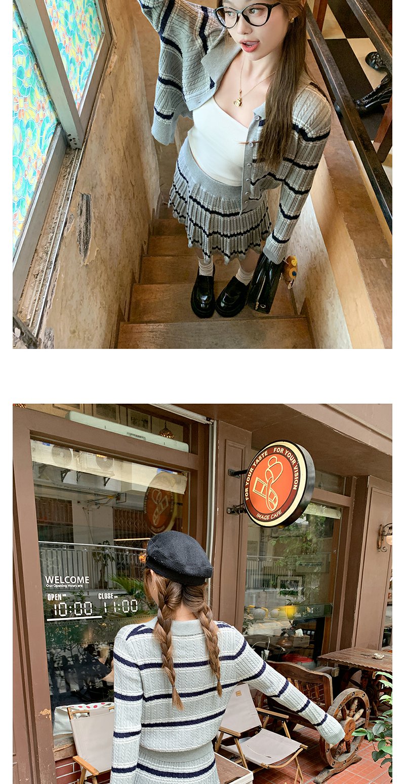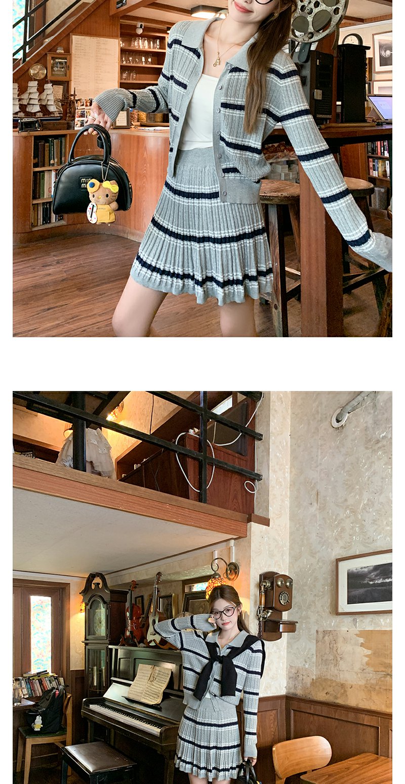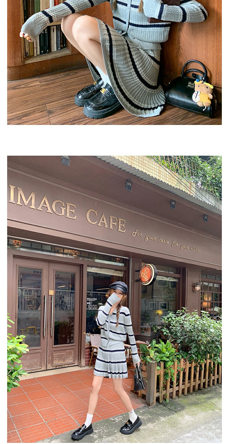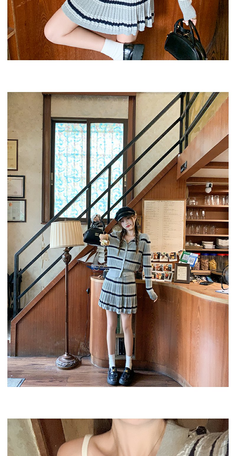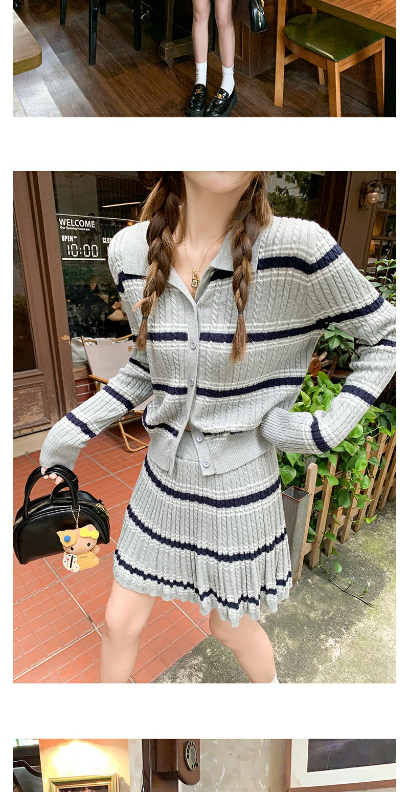 <曾小咸推荐>现货秒杀!微信超特价!翻领条纹针织衫高腰百裙两件套装 日常299.99 立减130 秒杀169.99!