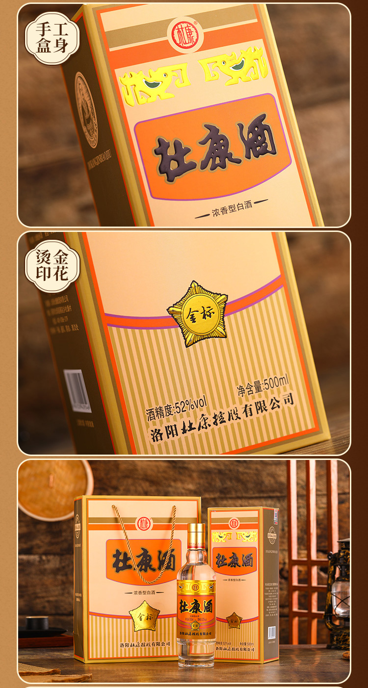 【送2瓶,到手8瓶】杜康金标52度 500ML*6瓶整箱装 浓香型优级纯粮白酒【拍3箱发4箱】