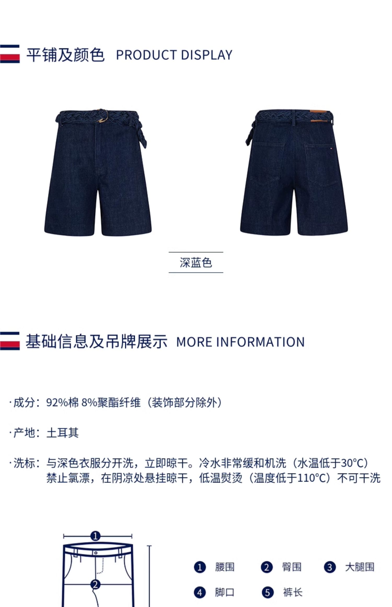 TOMMY 短裤女 WW38189-1BJ .92%COTTON 8%POLYESTER
