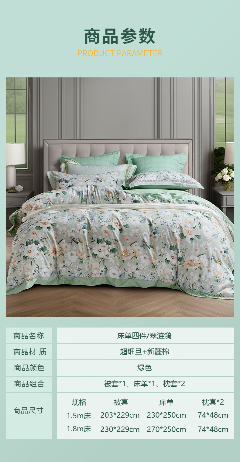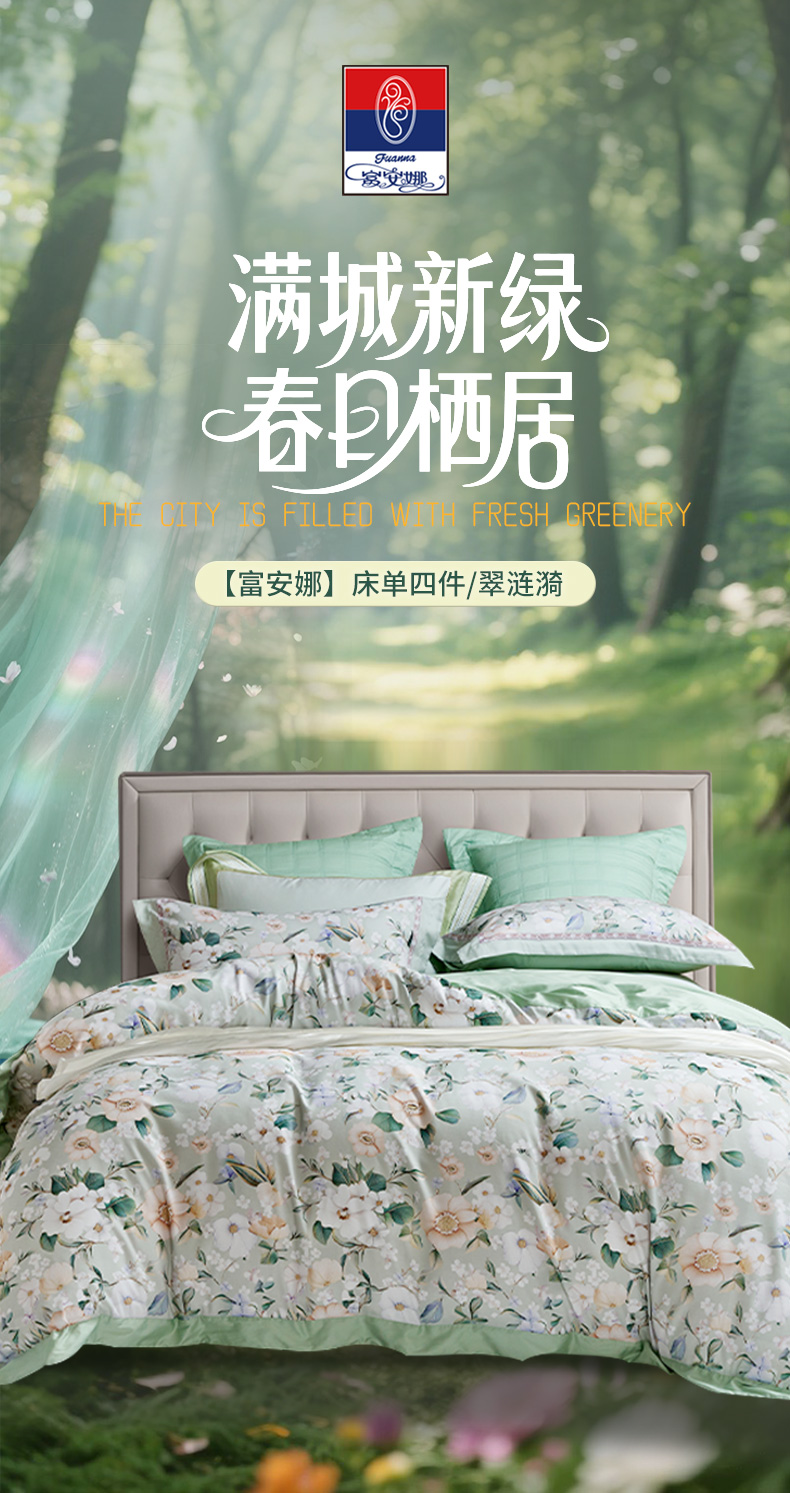 【自提】富安娜床单四件套翠涟漪标准绿【A31】