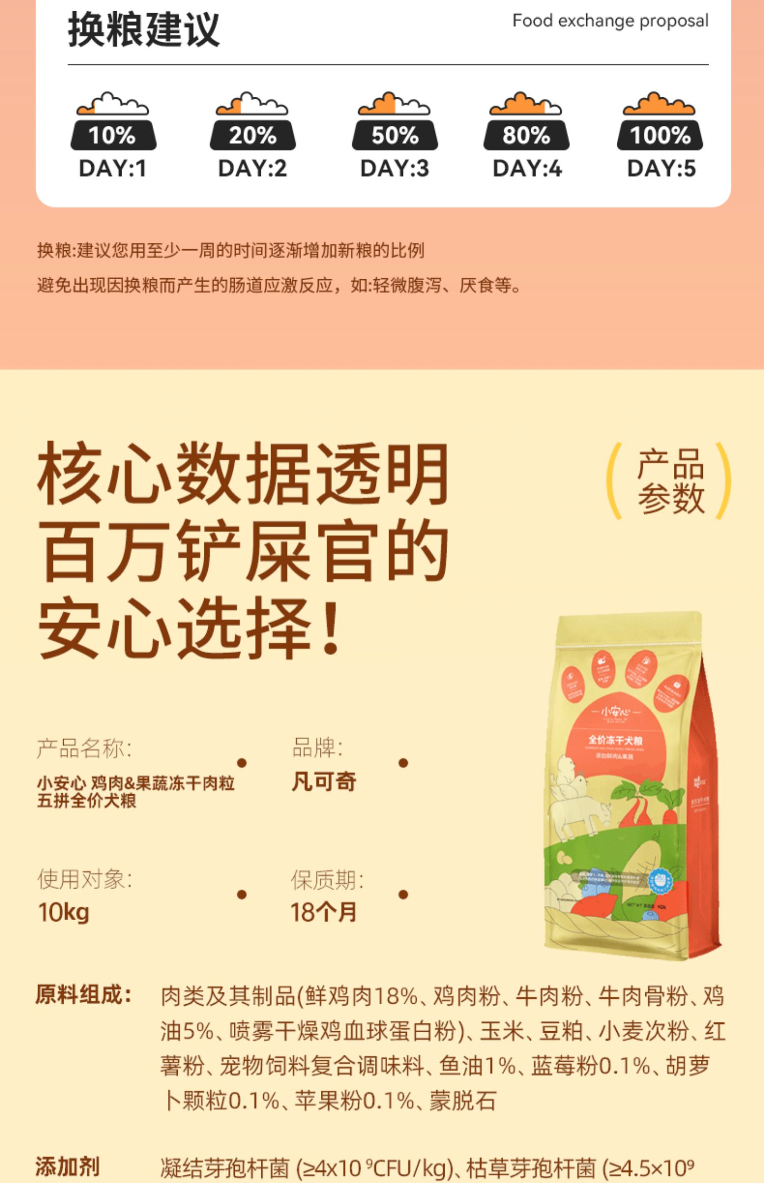 小安心狗粮40斤装 冻干鲜肉大中小型犬泰迪金毛成犬幼犬通用正品