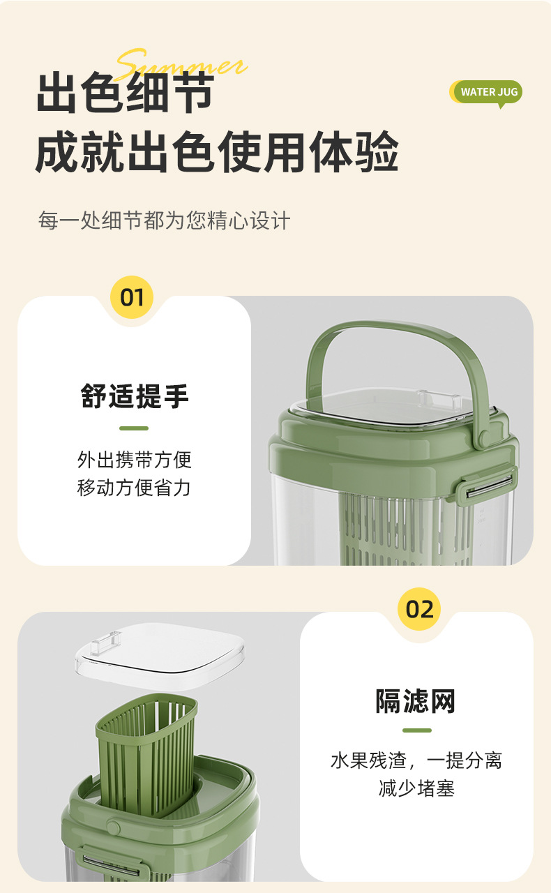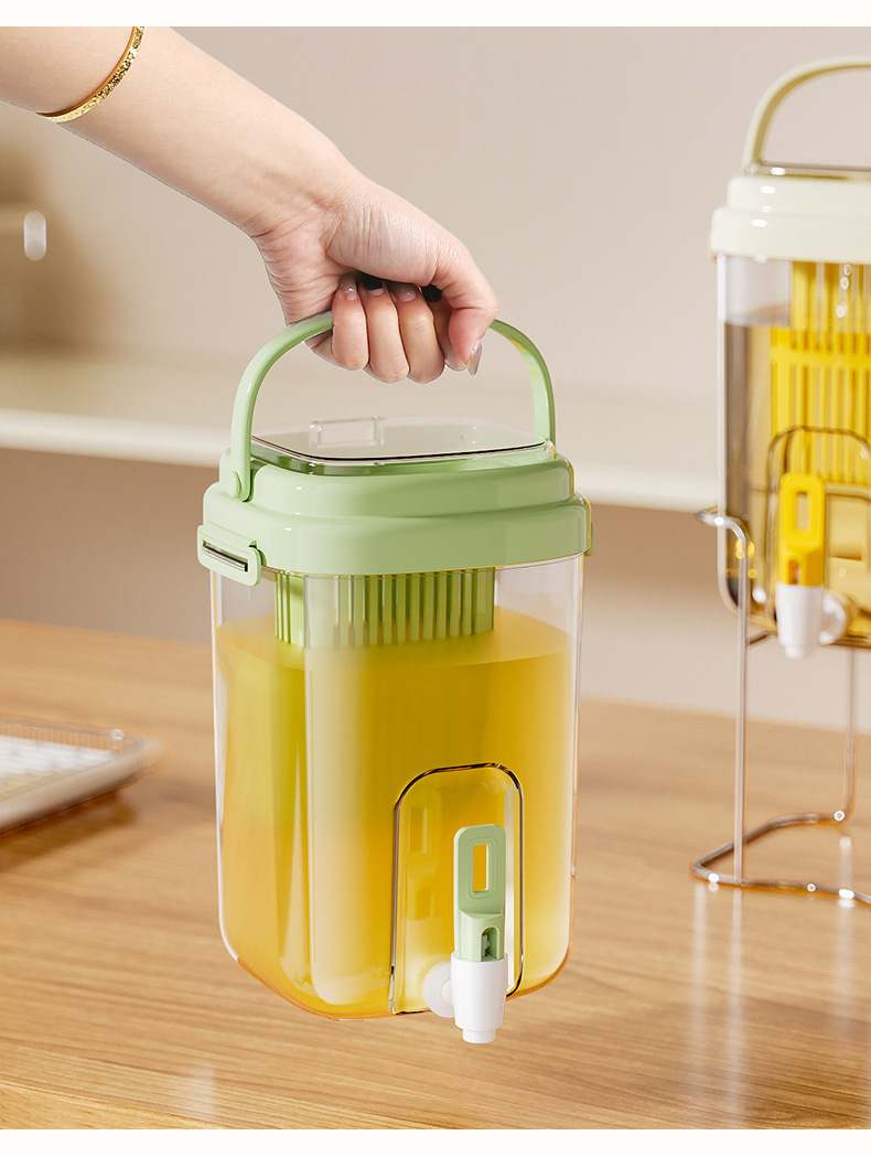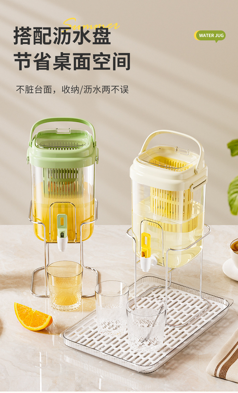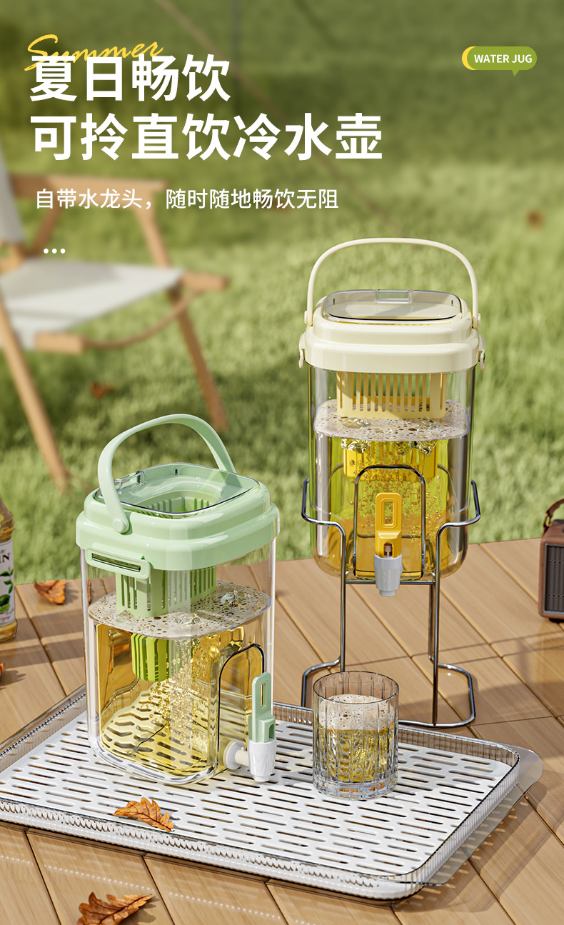 【便携可提可放!露营好搭档】高颜值夏天冰桶冷水壶大容量冰箱水果茶冷泡壶带滤网水龙头饮料桶,自带水龙头,一秒出水更便捷!