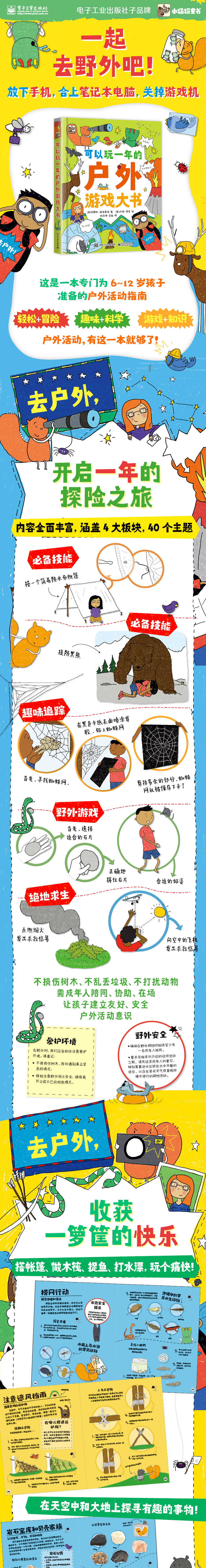 ★涵盖4大板块、40个主题,包括野外探险、户外拓展、绝地求生、休憩游戏等,内容丰富、有趣、刺激。★锻炼观察力、动手能力、独立能力和冒险精神。★亲子户外活动、户外拓展、野外探险指导手册。编辑推荐:1.户外活动,有这一本就够了!涵盖4大板块、40个主题,包括野外探险、户外拓展、绝地求生、休憩游戏等全部户外活动指南,内容丰富、有趣、刺激。2.能力提升大集结!有效锻炼孩子的观察能力、动手能力、独立能力和冒险精神,让孩子更加坚韧、积极向上。3.汇集各科实用知识!地理、生物、科学实践知识比比皆是,边玩边学,记忆更深刻。4.亲子户外活动、户外拓展、野外探险指导手册。