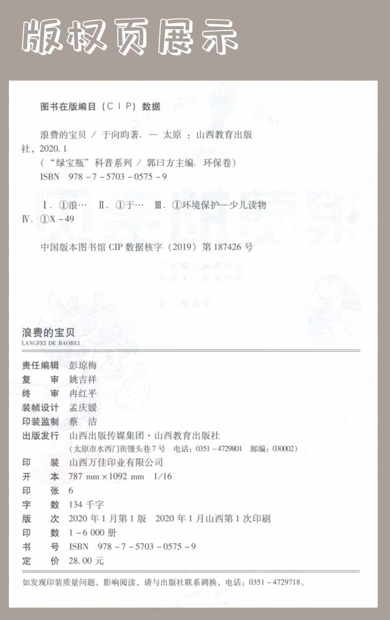 正版 少儿读物 绿宝瓶科普系列丛书环保卷浪费的宝贝 环境保护