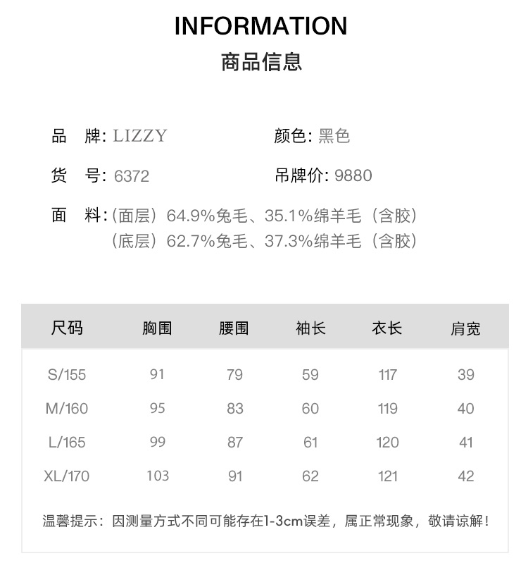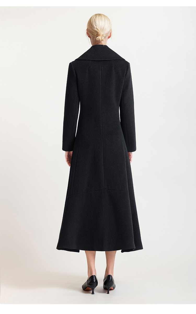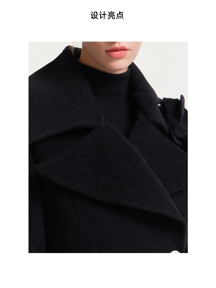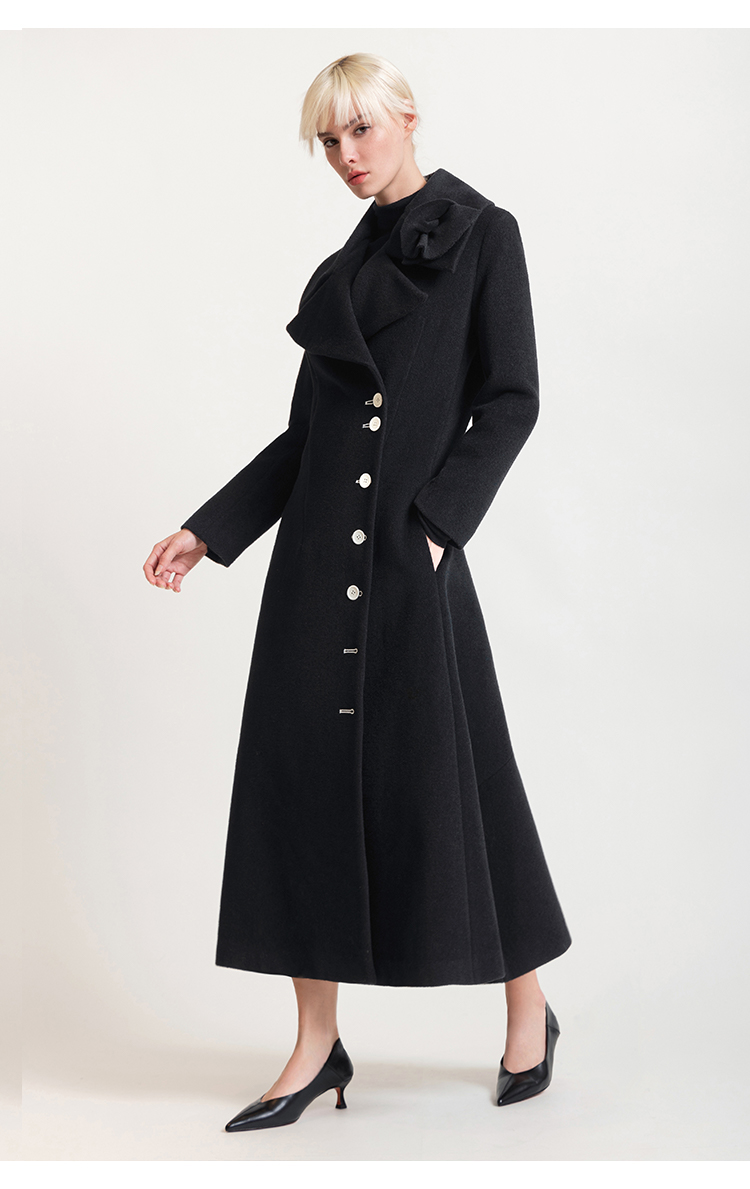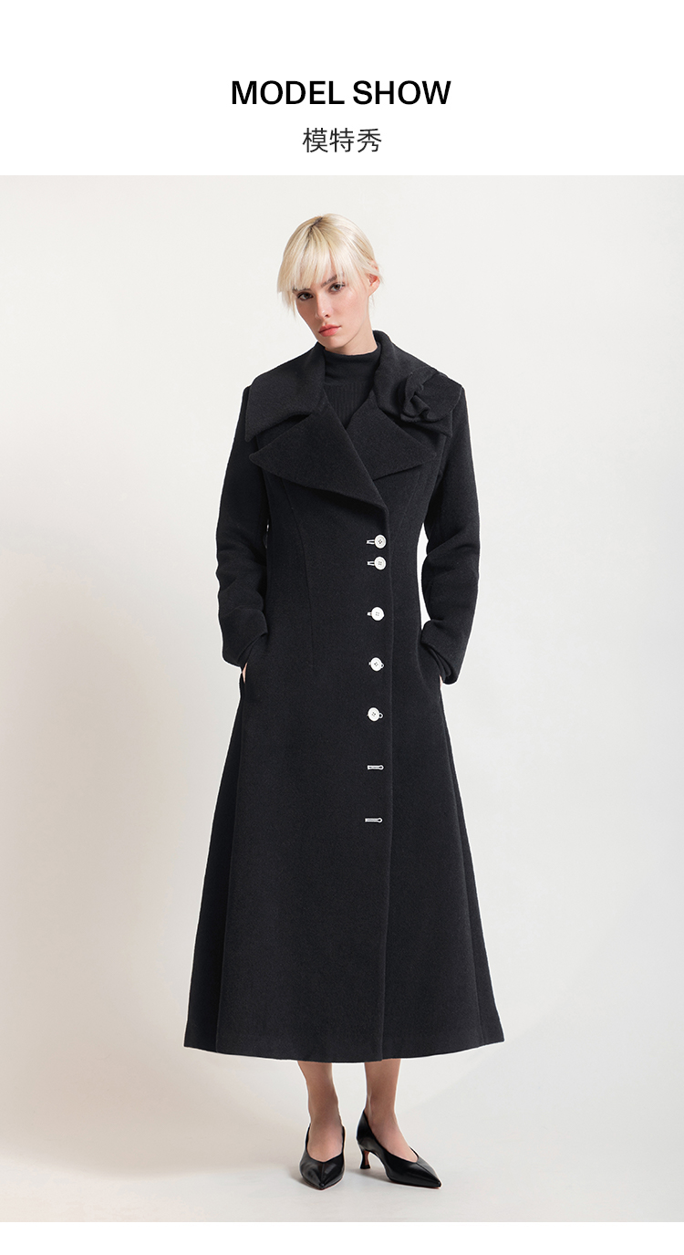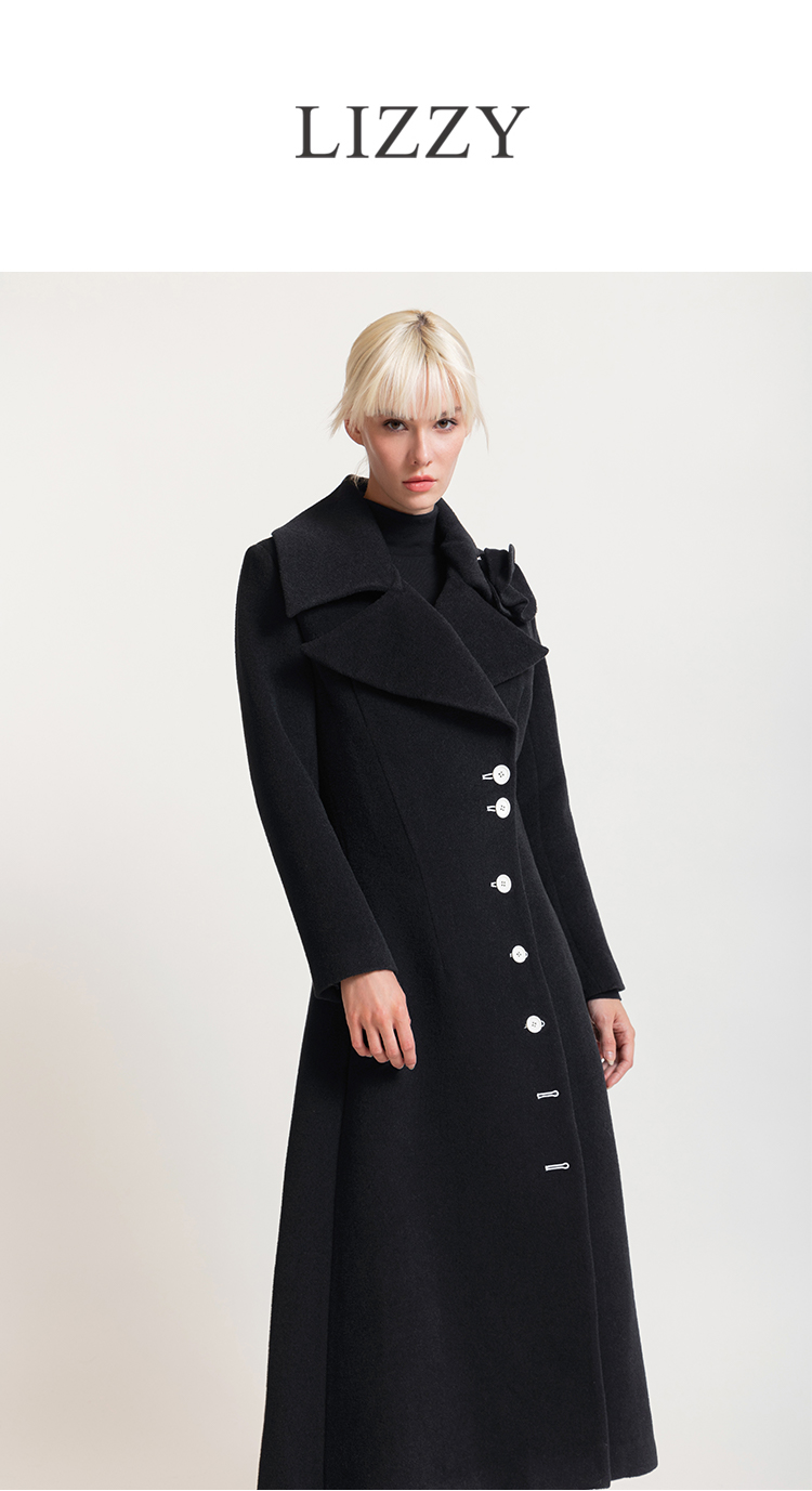 LIZZY 秋冬欧式复古手工盘花大翻领配可脱卸胸针绵羊毛长款大衣外套6372