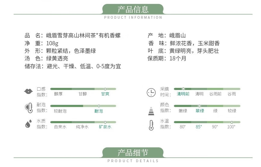 【茶叶 】峨眉雪芽·有机香螺 108g(4g*27) 礼盒装 峨眉山高山有机绿茶 ZY