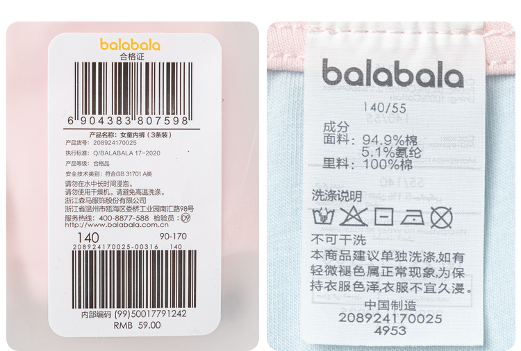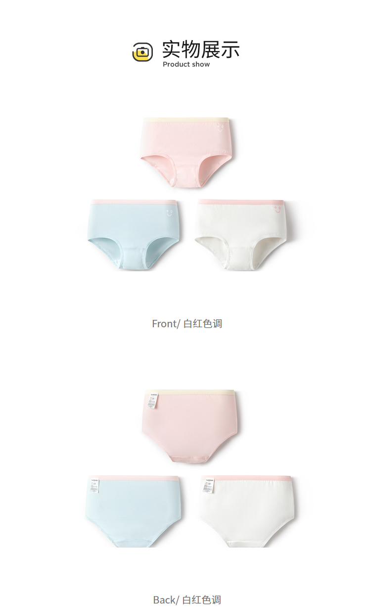 巴拉巴拉女童内裤棉平角儿童三角短裤小童宝宝萌不夹PP亲肤三条装