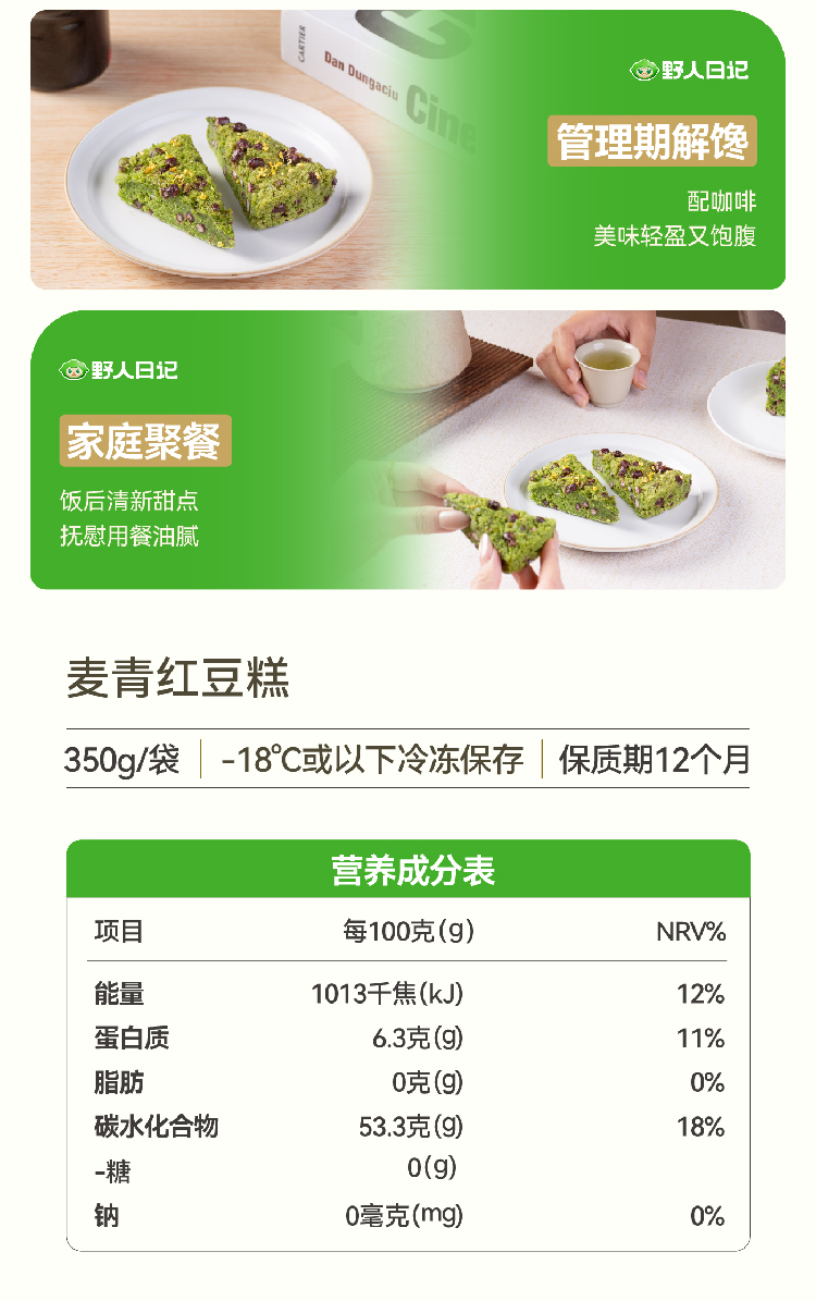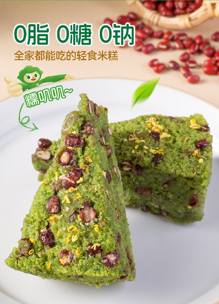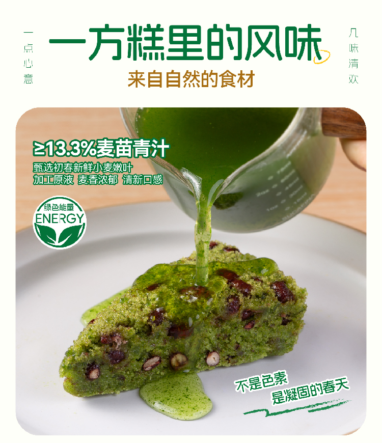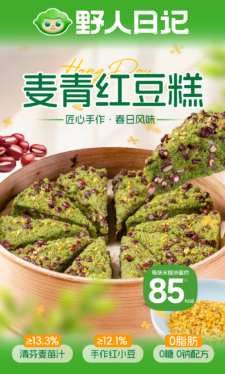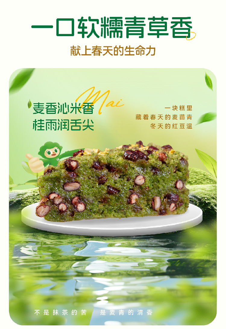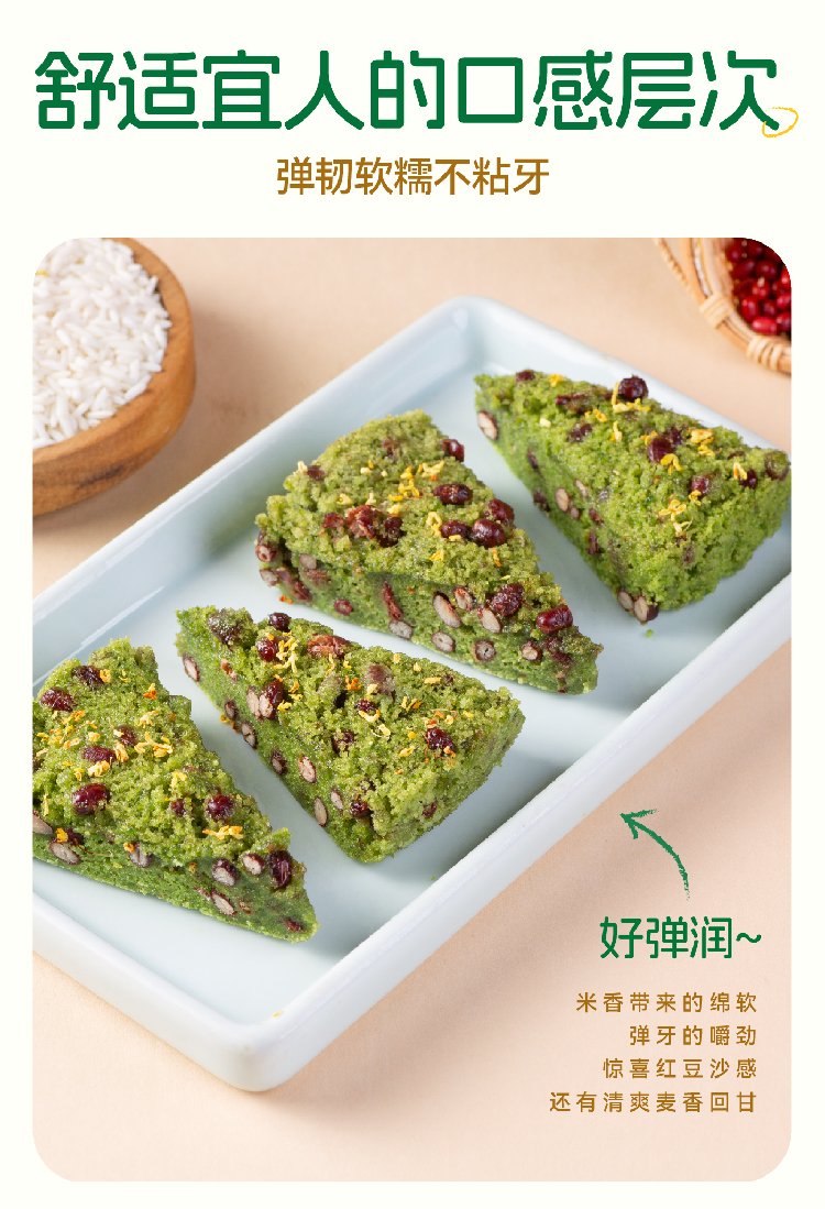 【野人日记麦青红豆糕】弹韧软糯轻食米糕 匠心手作春日风味