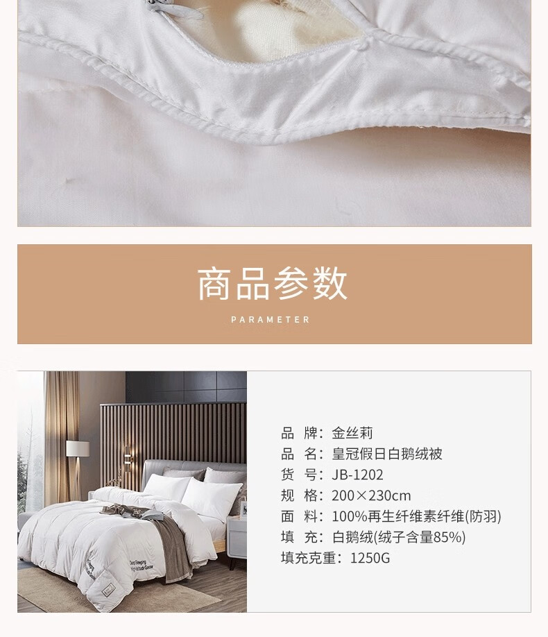 金丝莉(KINTHERI) 皇冠假日白鹅绒被 200x230cm