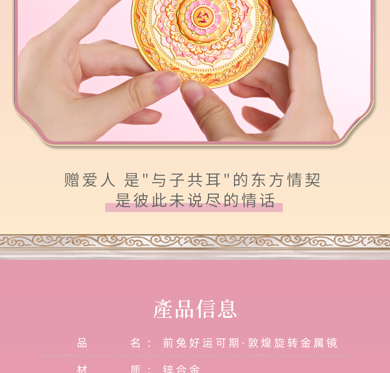 敦煌研究院 【好运转来旋转金属镜】 文创镜子化妆镜随身镜礼物伴手礼