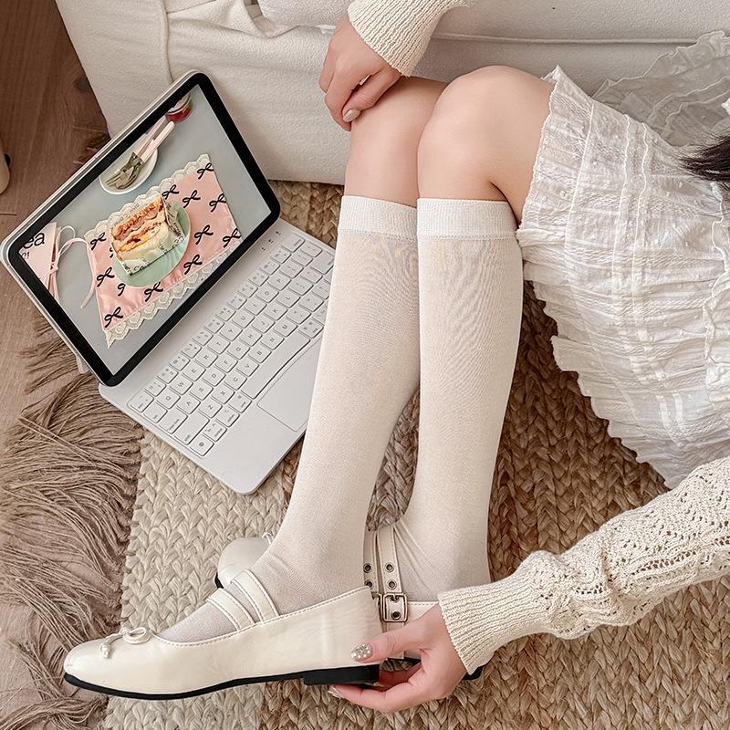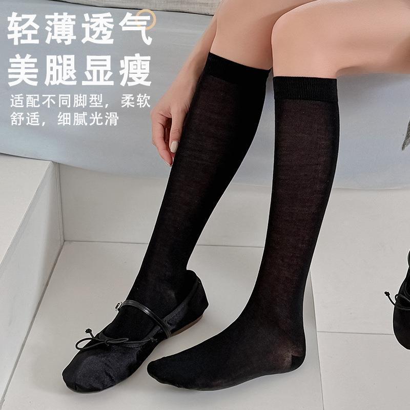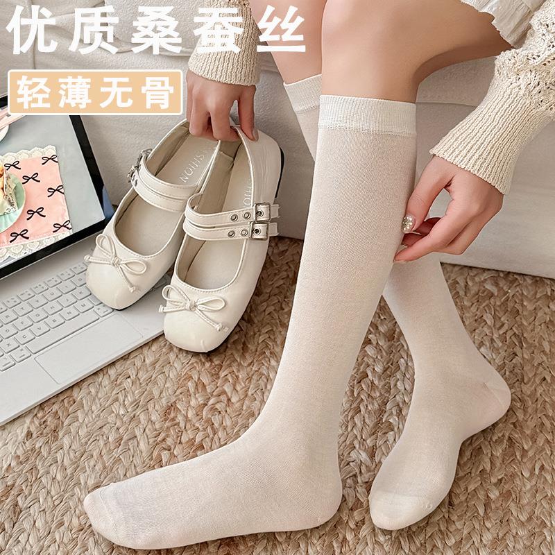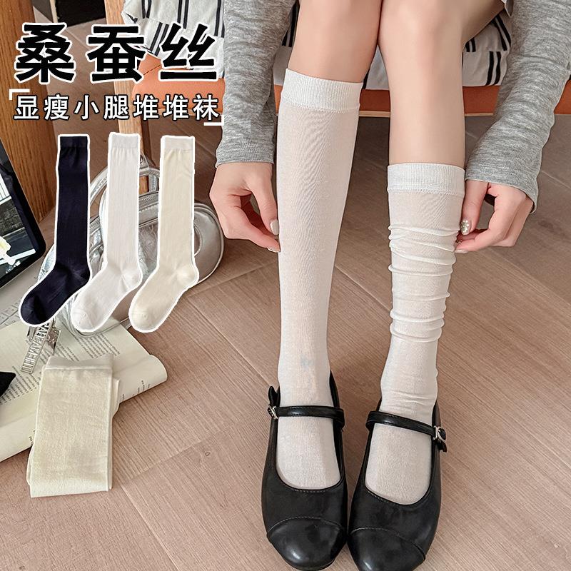 【2026夏季轻薄桑蚕丝小腿袜】夏季薄款清凉透气不下滑纯色堆堆袜