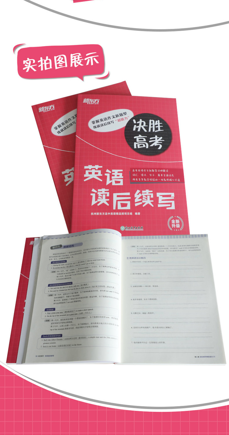 杭州新东方高中英语精品班项目组是一个热爱教学、充满活力的项目组,致力于高中英语的教学与实践,孜孜不倦地从事新高考英语的教学研究,同时每年不断更新高中英语教学的相关讲义。本次图书的编写更是由平均教龄6年以上的资深骨干教师完成,根据自己多年的新高考读后续写的教学实践,将读后续写的核心要素呈现给广大师生,以高标准要求自身,来为更多学习者提供更优质的教学体验。